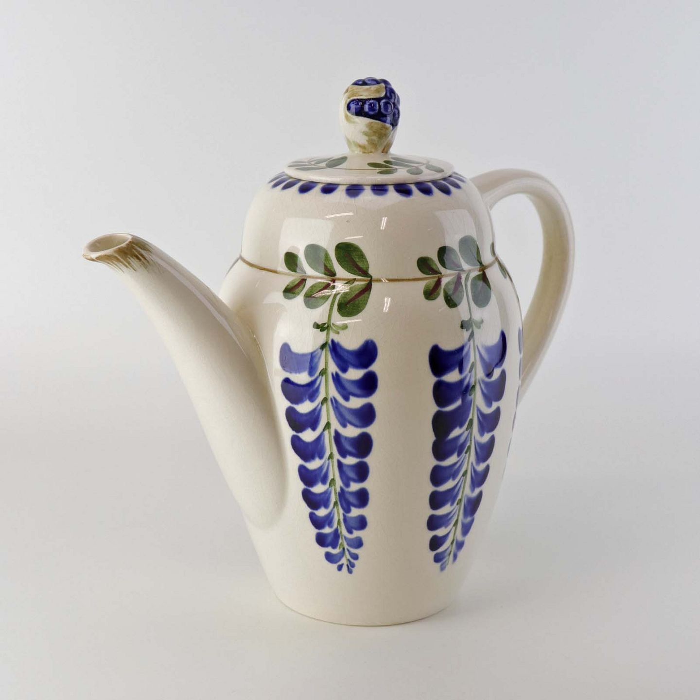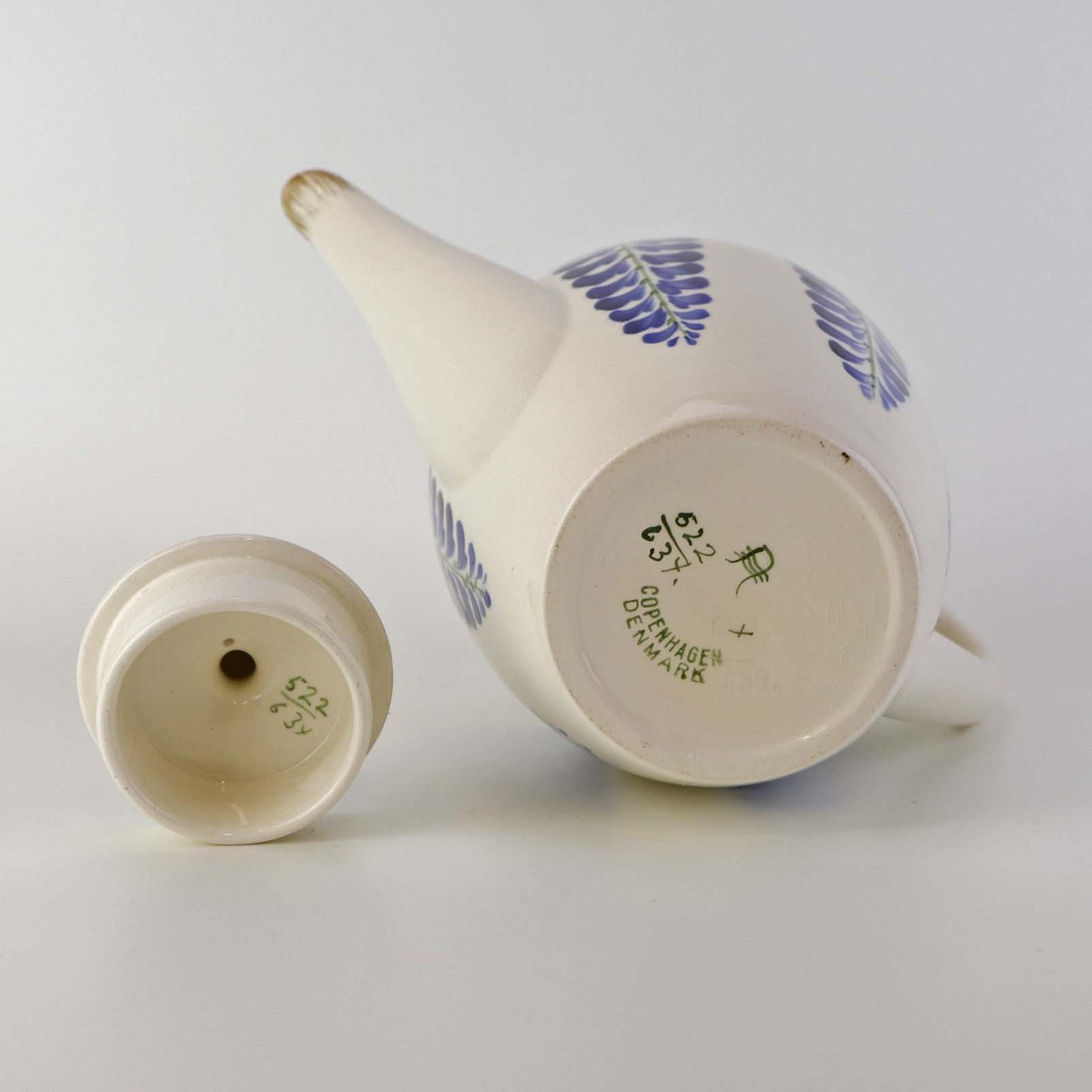 Kande til kaffe i fajance fra stellet Blåregn. Stellet er fremstillet i perioden år 1903-1933. Nr. 522/634Formgiver Christian Joachim