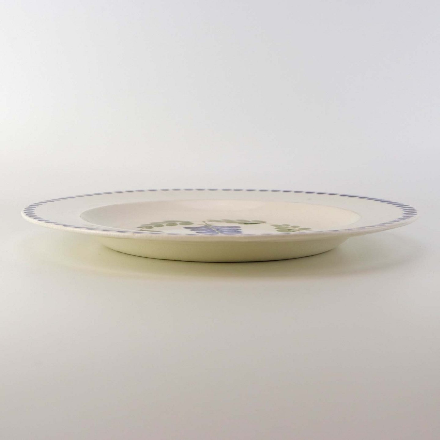 Flad middagstallerken i fajance fra stellet Blåregn. Stellet er fremstillet i perioden år 1903-1933. Nr. 522/504Formgiver Christian Joachim