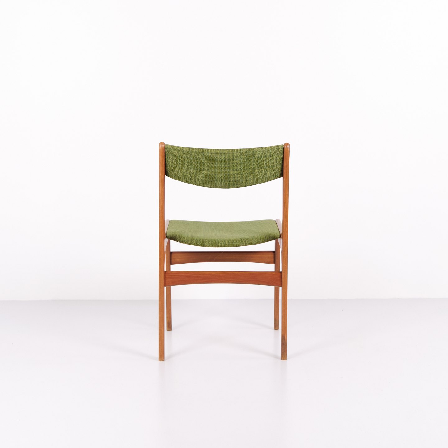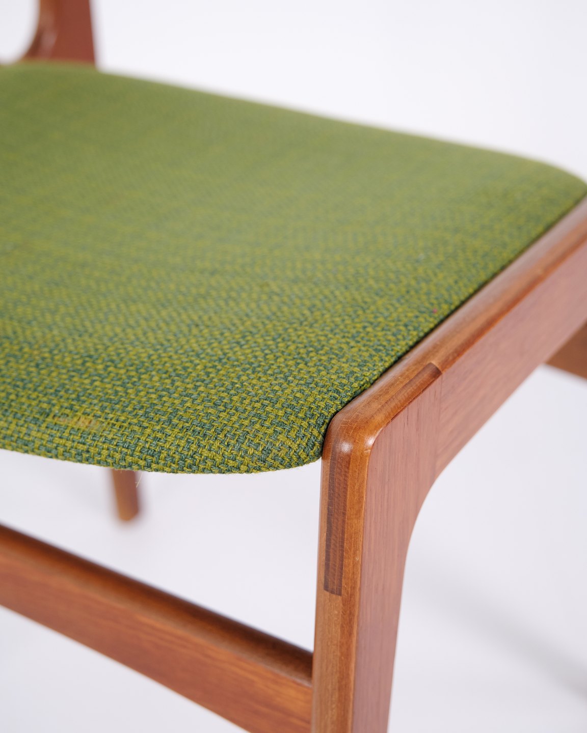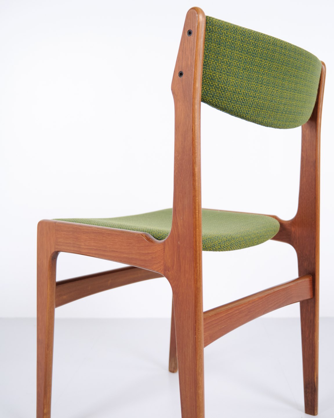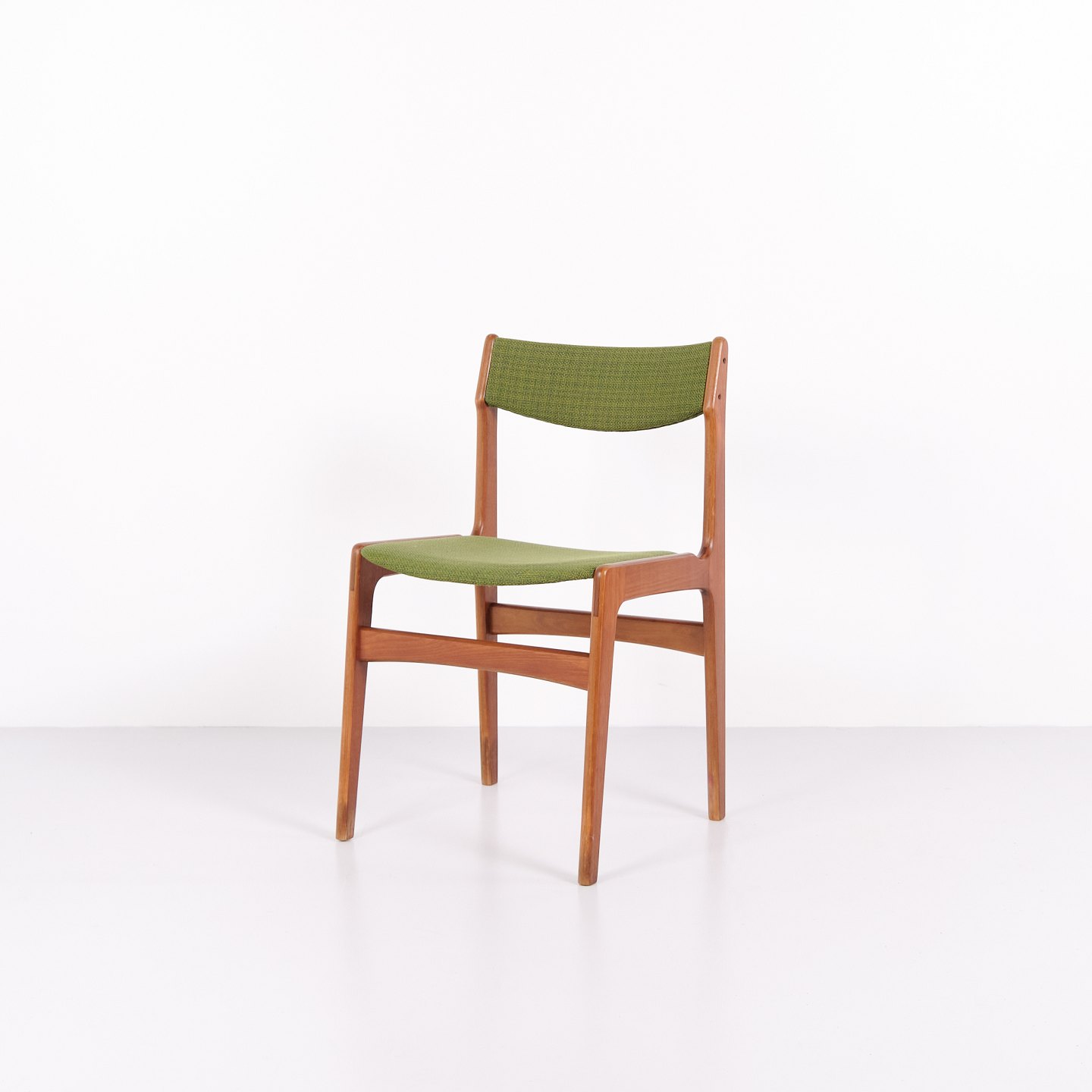 Erik Buch Esszimmerstuhl aus den 1960er Jahren aus Teakholz und grünem Stoff. Klassisches dänisches Design.— Herkunft: Dänemark