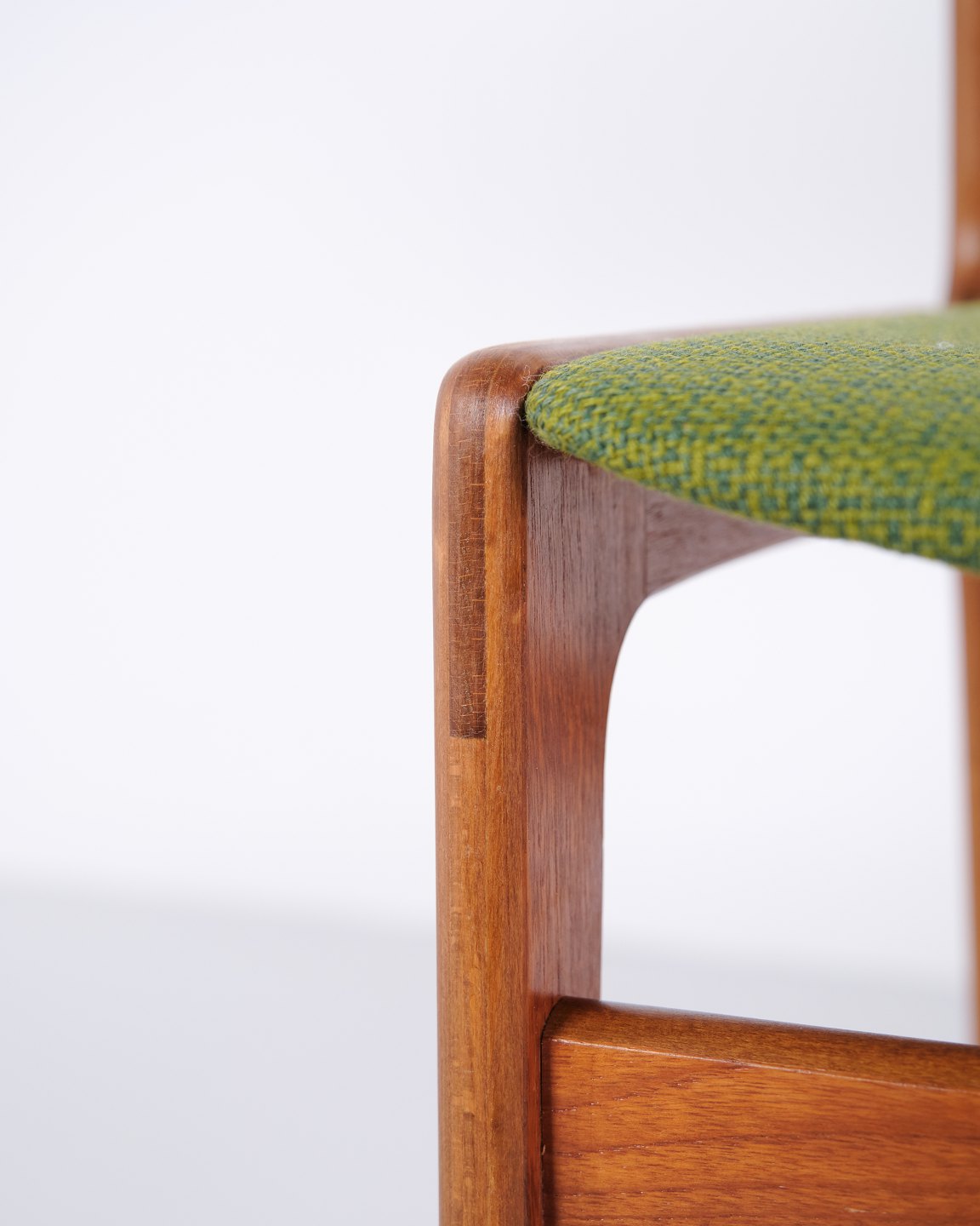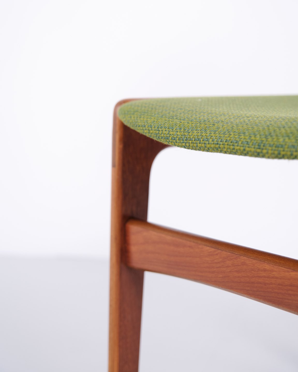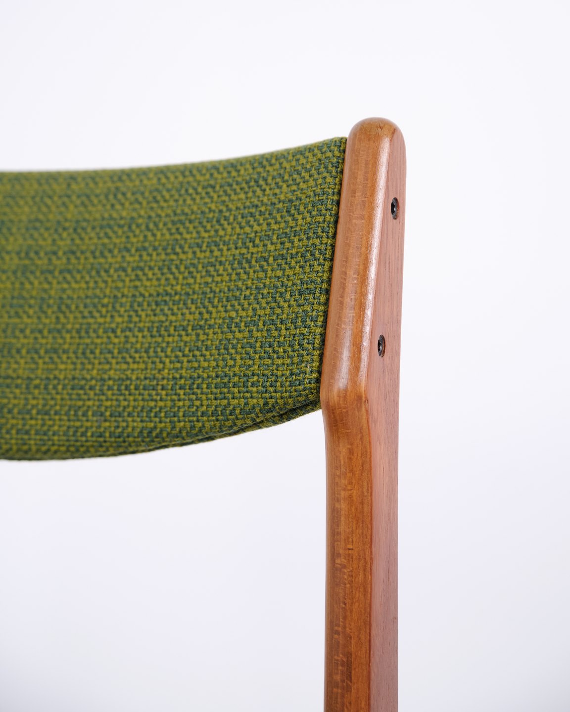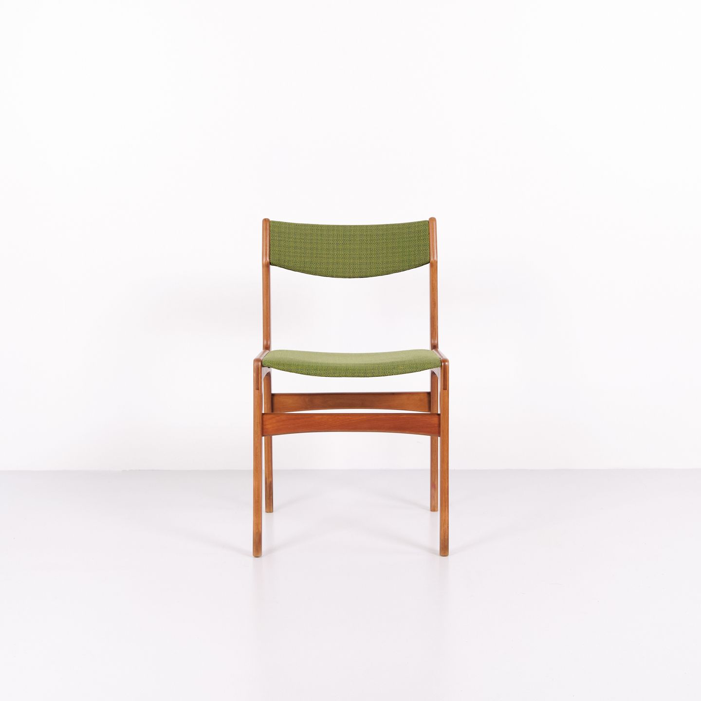 Erik Buch Esszimmerstuhl aus den 1960er Jahren aus Teakholz und grünem Stoff. Klassisches dänisches Design.— Herkunft: Dänemark
