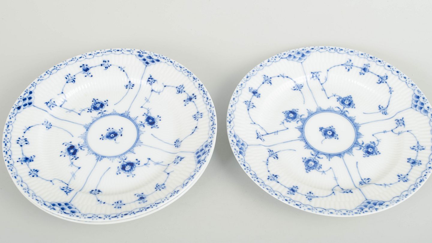 Royal Copenhagen Musselmalet Halvblonde, sæt af tre små frokosttallerkener.