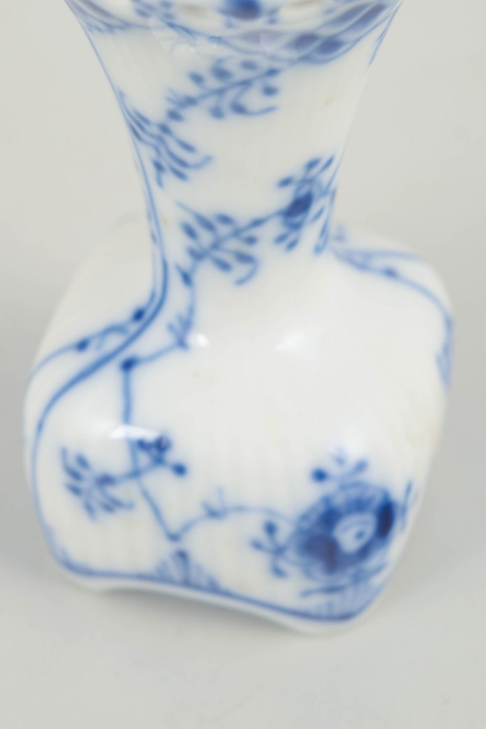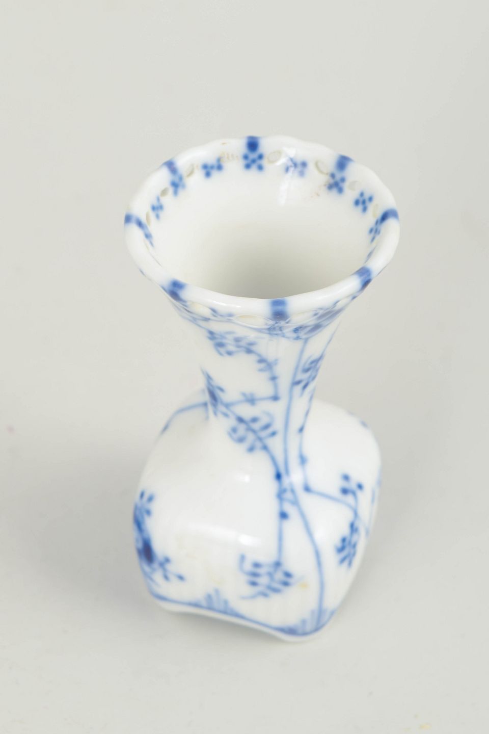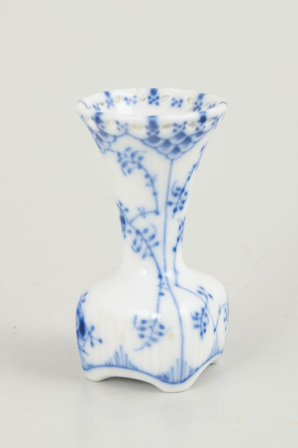 Royal Copenhagen Musselmalet Helblonde lille kuvert vase.Lille vase i håndmalet porcelæn fra Musselmalet Helblonde med klassisk underglasurdekoration i koboltblå og gennembrudt blondekant.