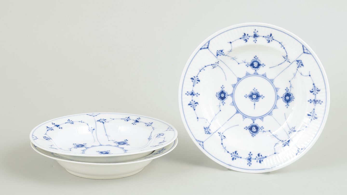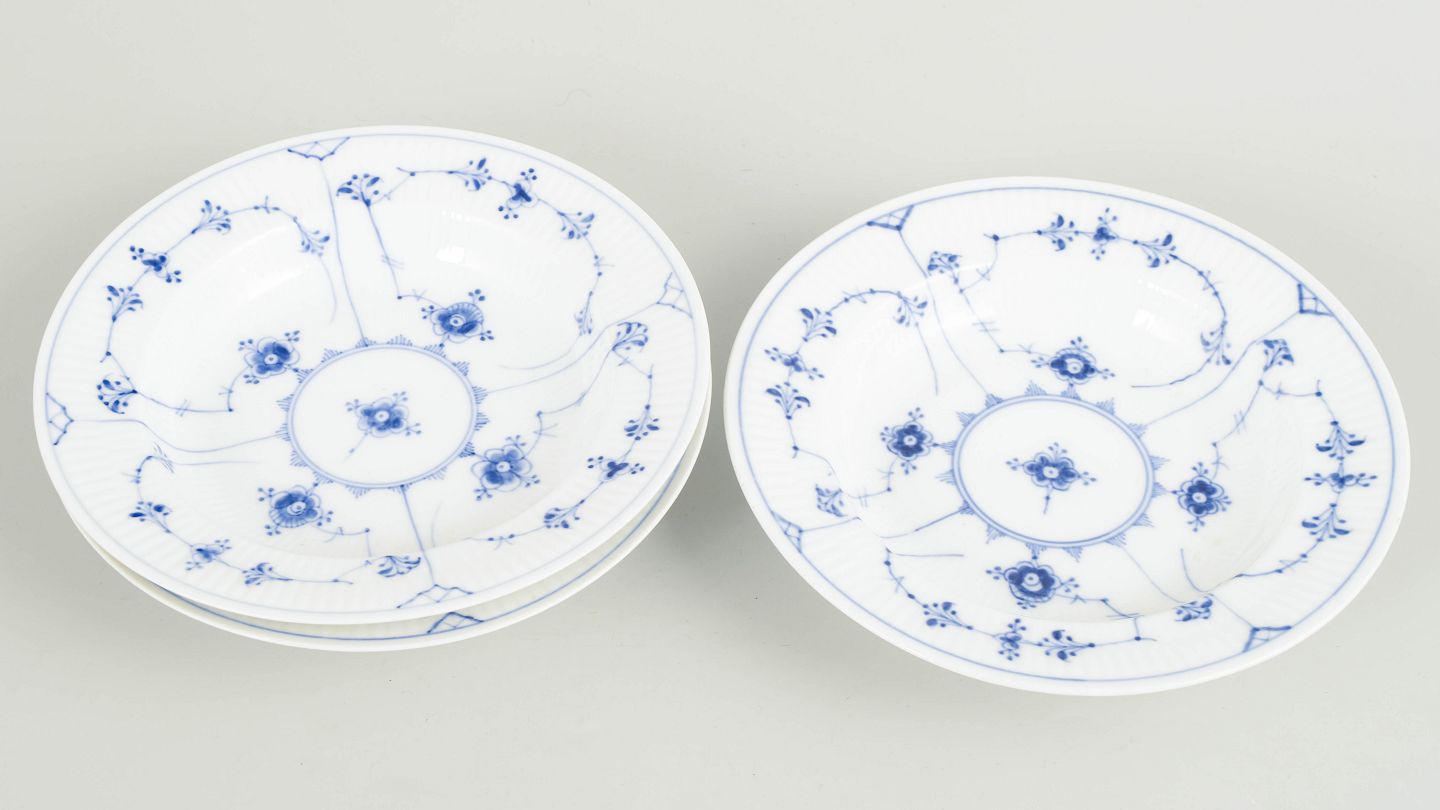 Royal Copenhagen Musselmalet Riflet, sæt af tre pasta tallerkener.