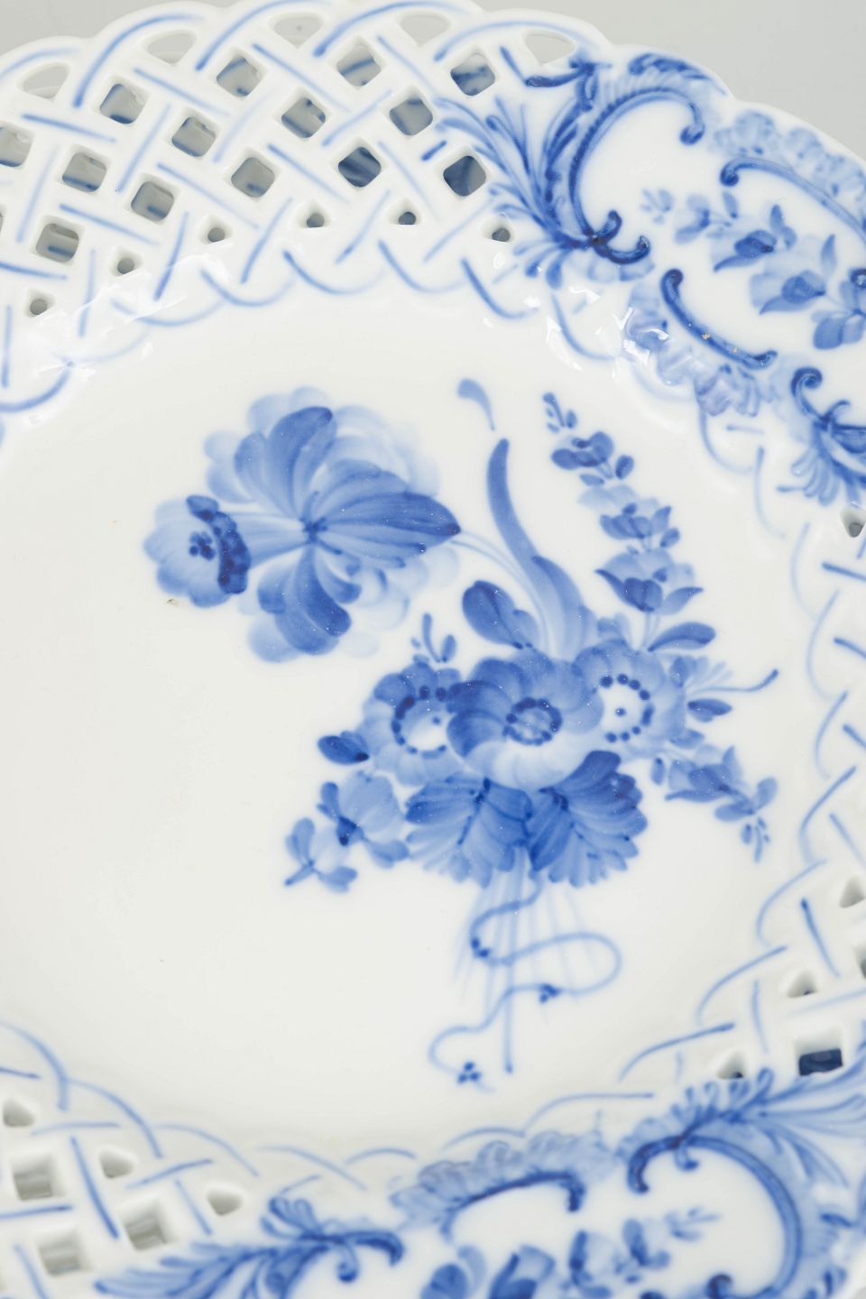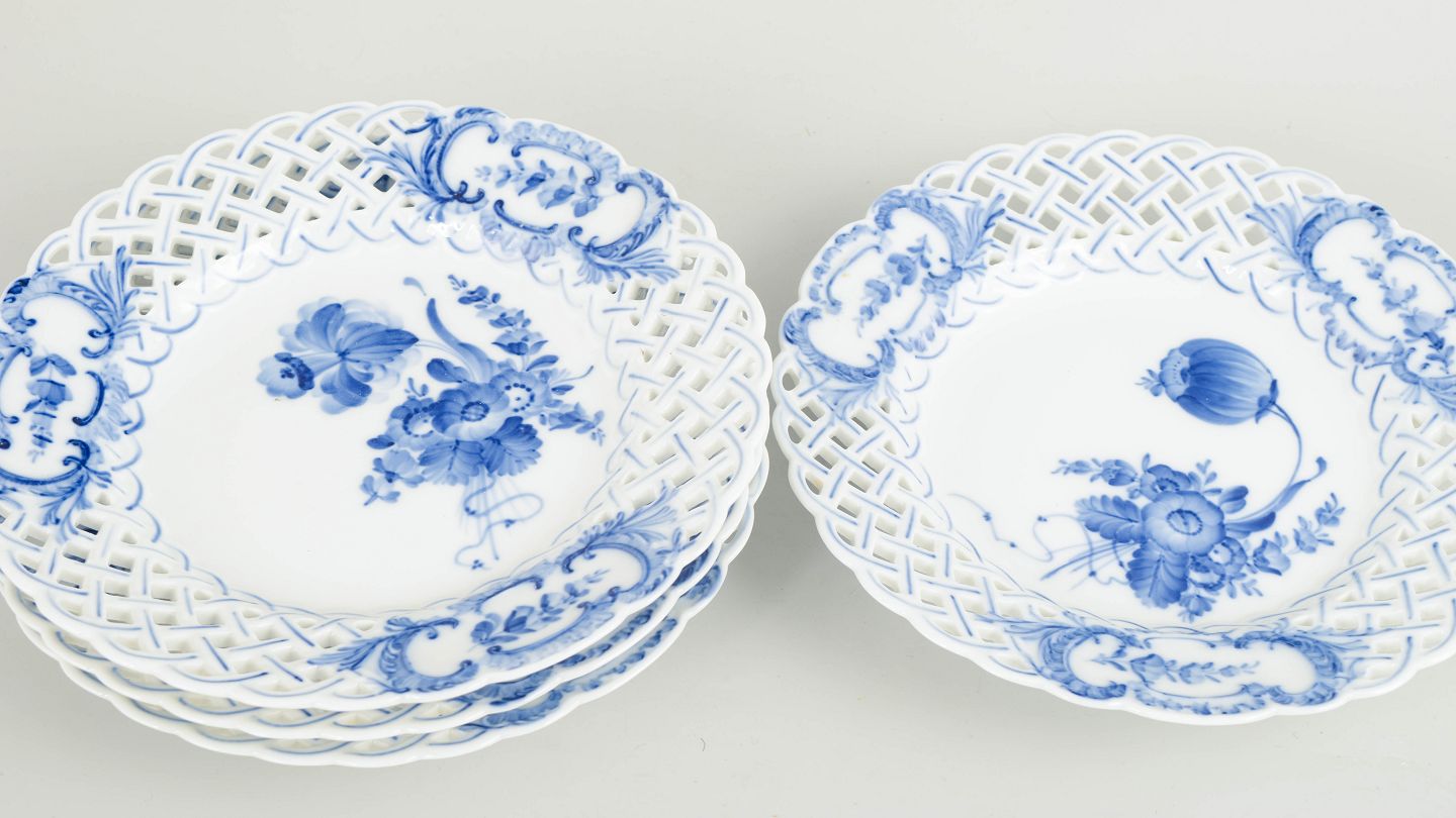Royal Copenhagen blev grundlagt i 1775 i København under kongelig bevilling. Fabrikken er internationalt anerkendt for sit håndmalede porcelæn og høje kunstneriske kvalitet. Blå Blomst blev introduceret i 1700-tallet og videreført gennem det 20. århundrede og er kendetegnet ved sin naturalistiske blomsterdekoration og karakteristiske gennembrudte rand.