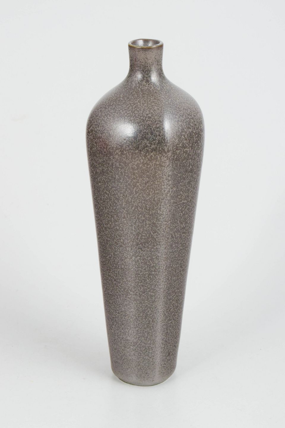 Berndt Friberg for Gustavsberg, stor Selecta vase.Stor drejet stentøjsvase med slank balusterform og smal hals. Udført i gråbrun harpelsglasur fra Selecta-serien. Stemplet Gustavsberg og Selecta i bunden.