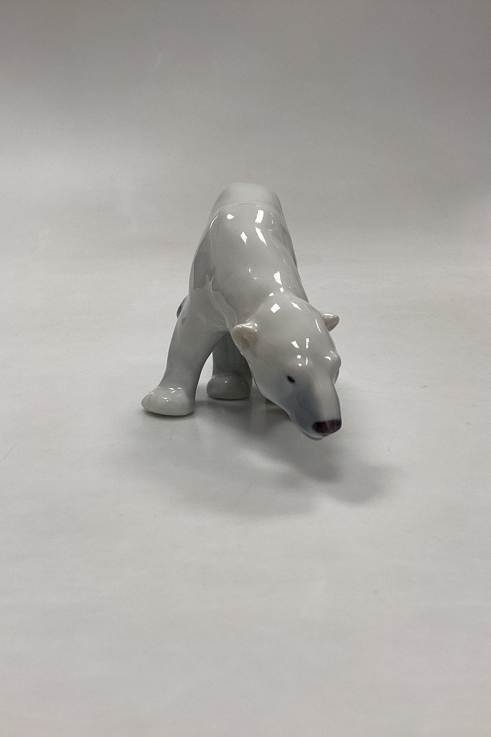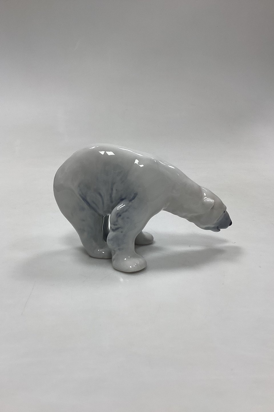 Royal Copenhagen Figur Spisende Isbjørn No. 054. Designet af Carl Johan Bonnesen. Måler 9 cm x 14 cm / 3,54 in. x 5,51 in. 1. Sortering.