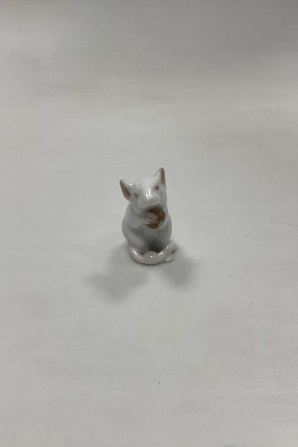 Royal Copenhagen Figur - Mus med Nød No. 344. Designet af A. Pedersen i 1901.Måler 5 cm / 1,97 in. 1. Sortering. Meget veludført reparation på begge ører, se foto.