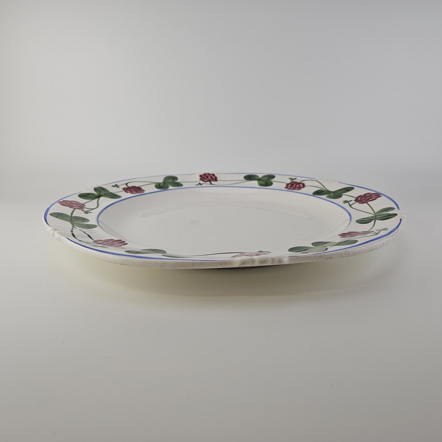 Rundt fad i kunstfajance fra stellet Kløver. Nr. 181/313Formgiver H. Slott-Møller år 1904