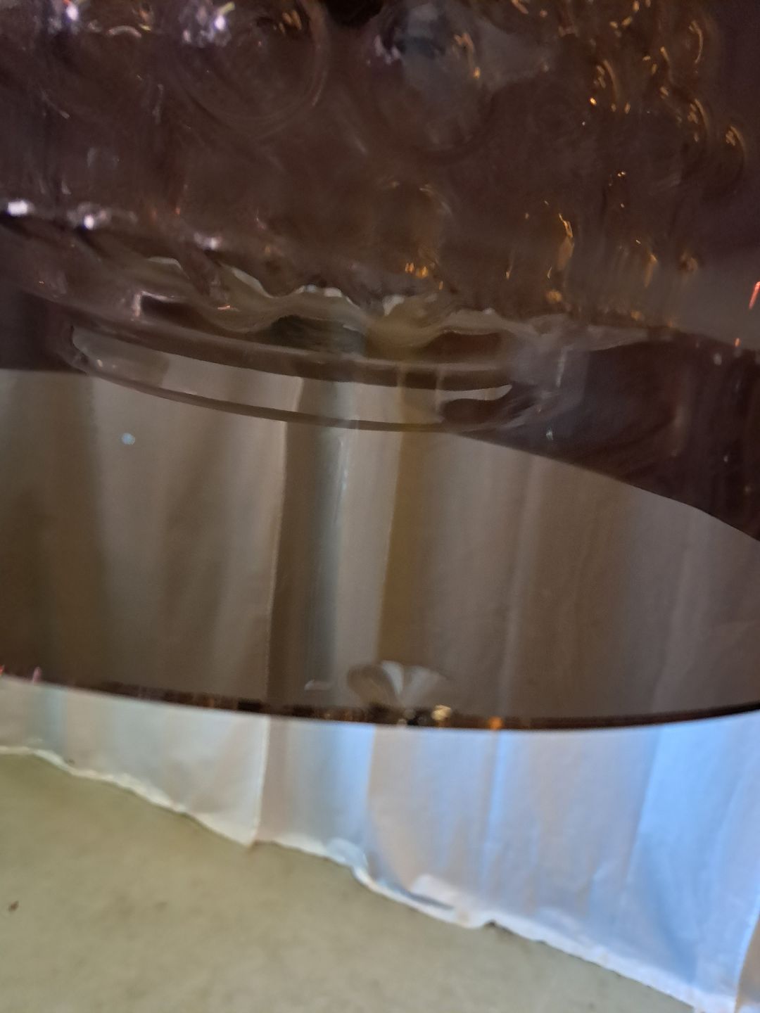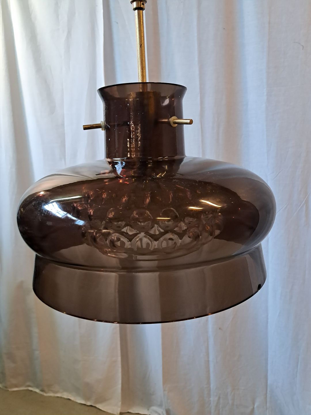 Loftlampe i glas, fra 1970erne.Den har brugsspor og et lille hak i skærmen.(se foto)