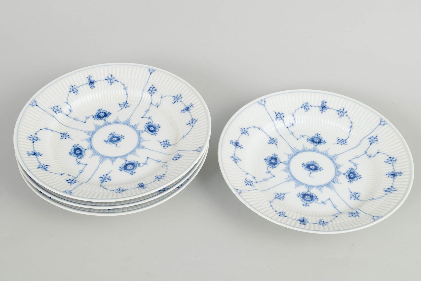 Royal Copenhagen Musselmalet Riflet sæt af fire frokosttallerkener.Beschreibung: