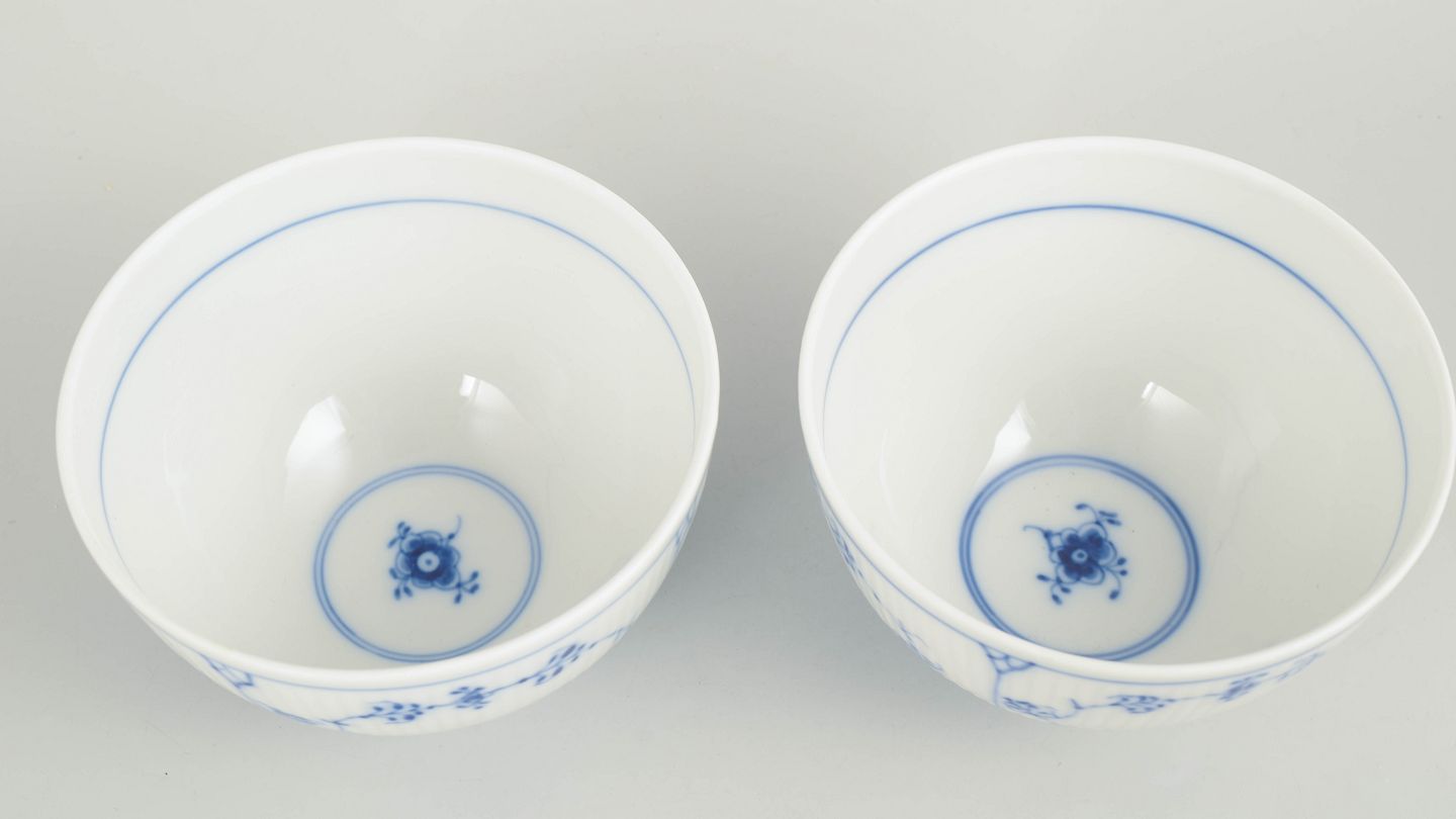 Royal Copenhagen Musselmalet Riflet sæt af to skåle.Beschreibung:
