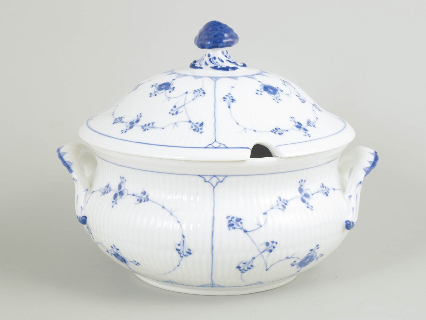 Royal Copenhagen Musselmalet Riflet stor suppeterrin med låg.Beschreibung: