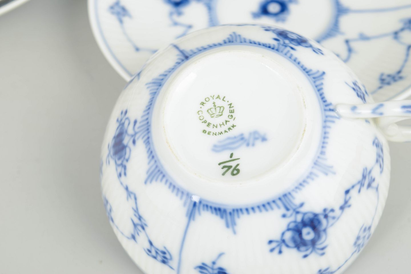 Royal Copenhagen blev grundlagt i 1775 i København under kongelig bevilling. Fabrikken er internationalt anerkendt for sit håndmalede porcelæn og sit høje kunstneriske niveau. Musselmalet Riflet er fabrikkens mest klassiske stel, introduceret i slutningen af 1700-tallet og fortsat produceret med traditionel håndmalingsteknik.