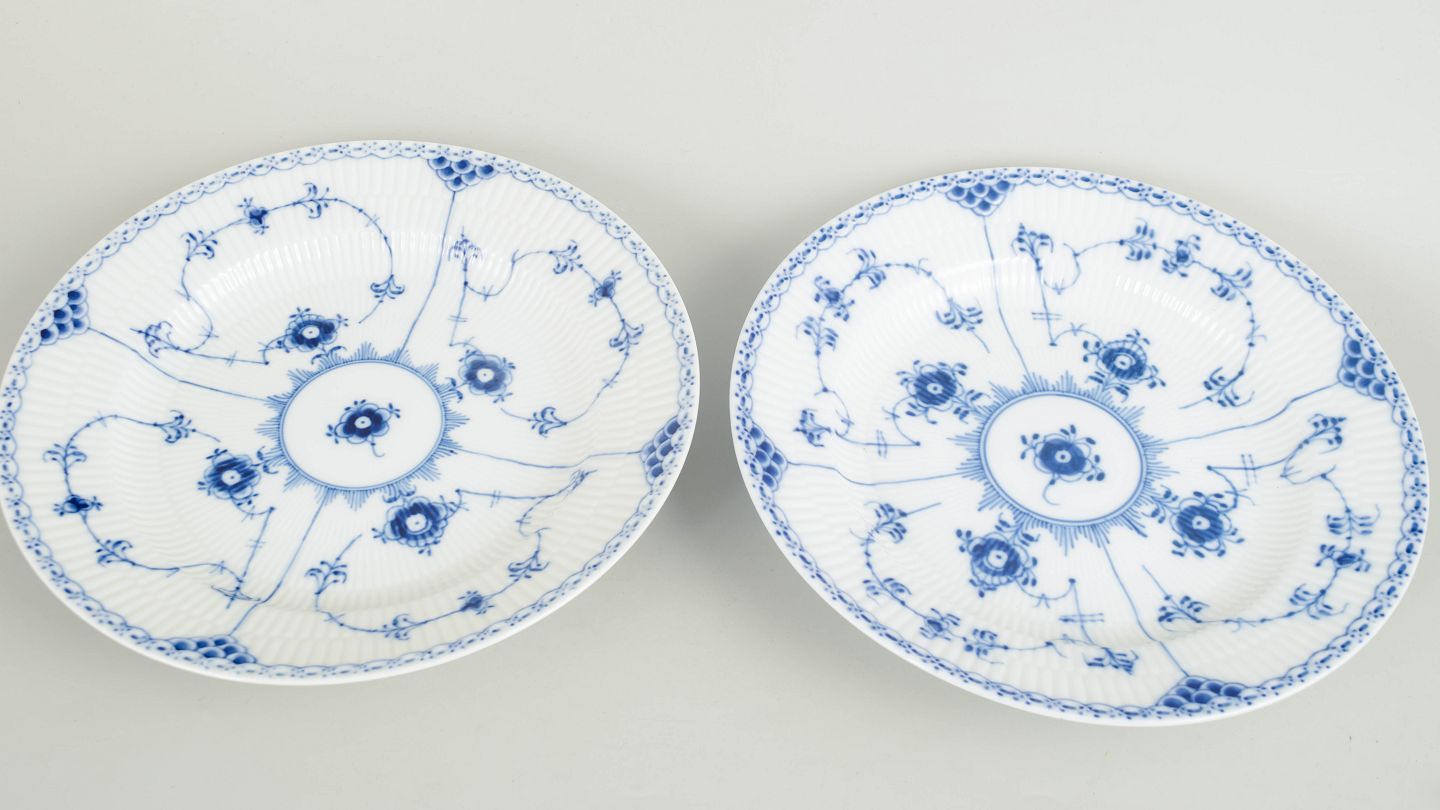 Royal Copenhagen Musselmalet Halvblonde to middagstallerkener.Beschreibung: