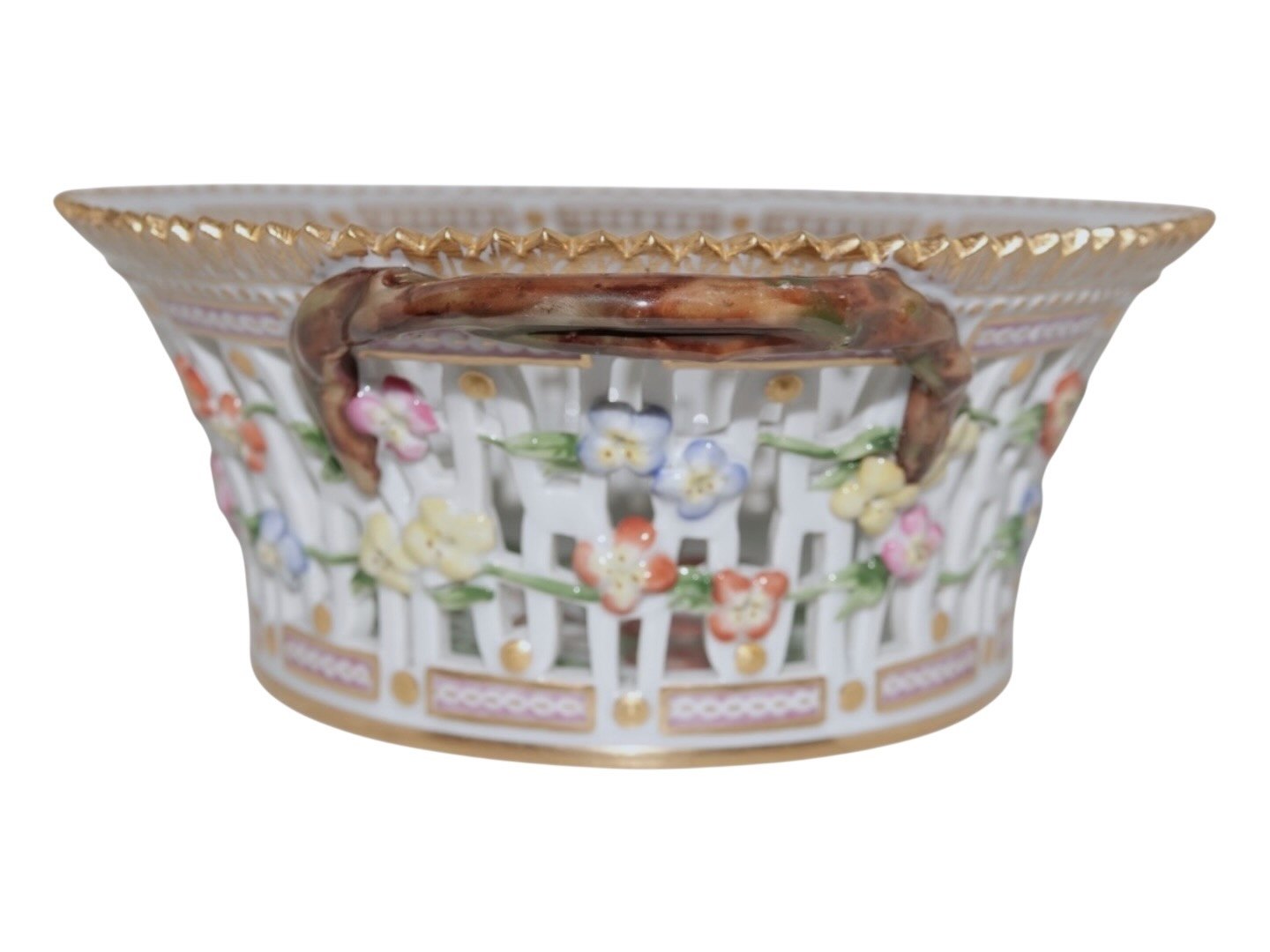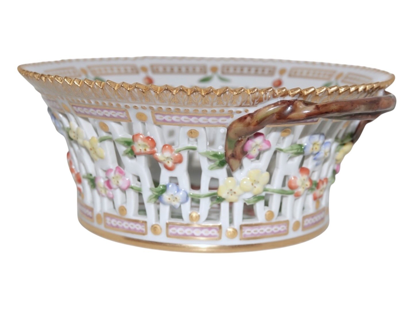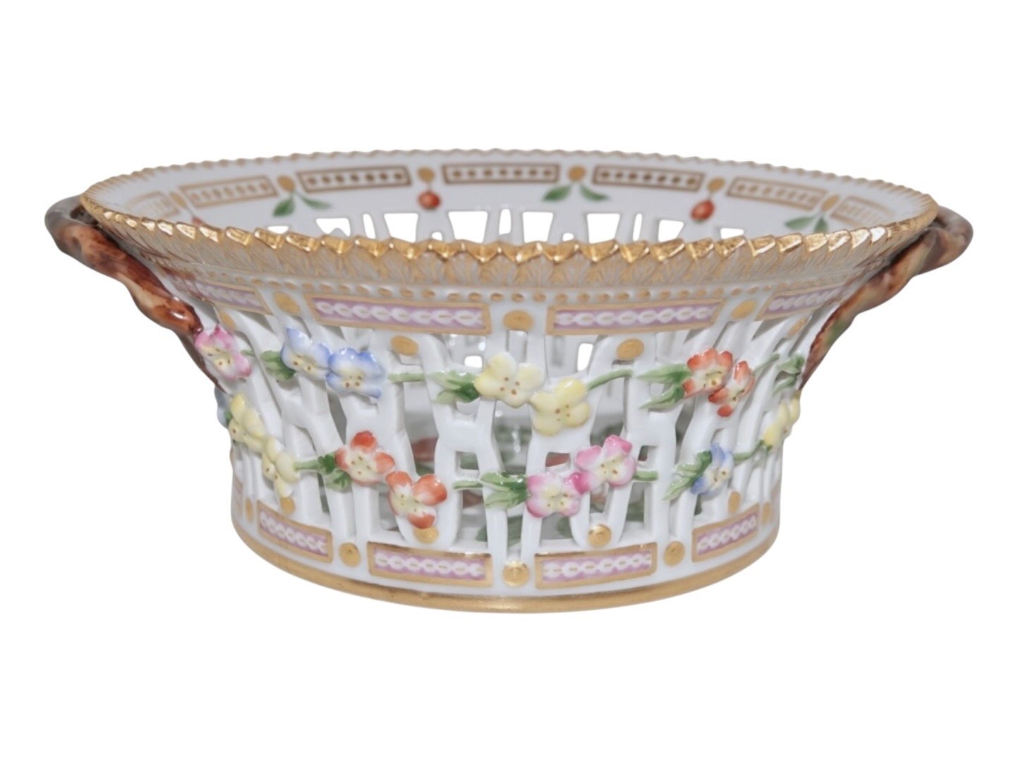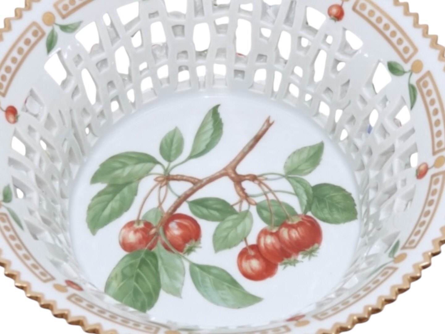 Royal Copenhagen Flora Danica, rund frugtkurv.Dekorationsnummer 20/3534.