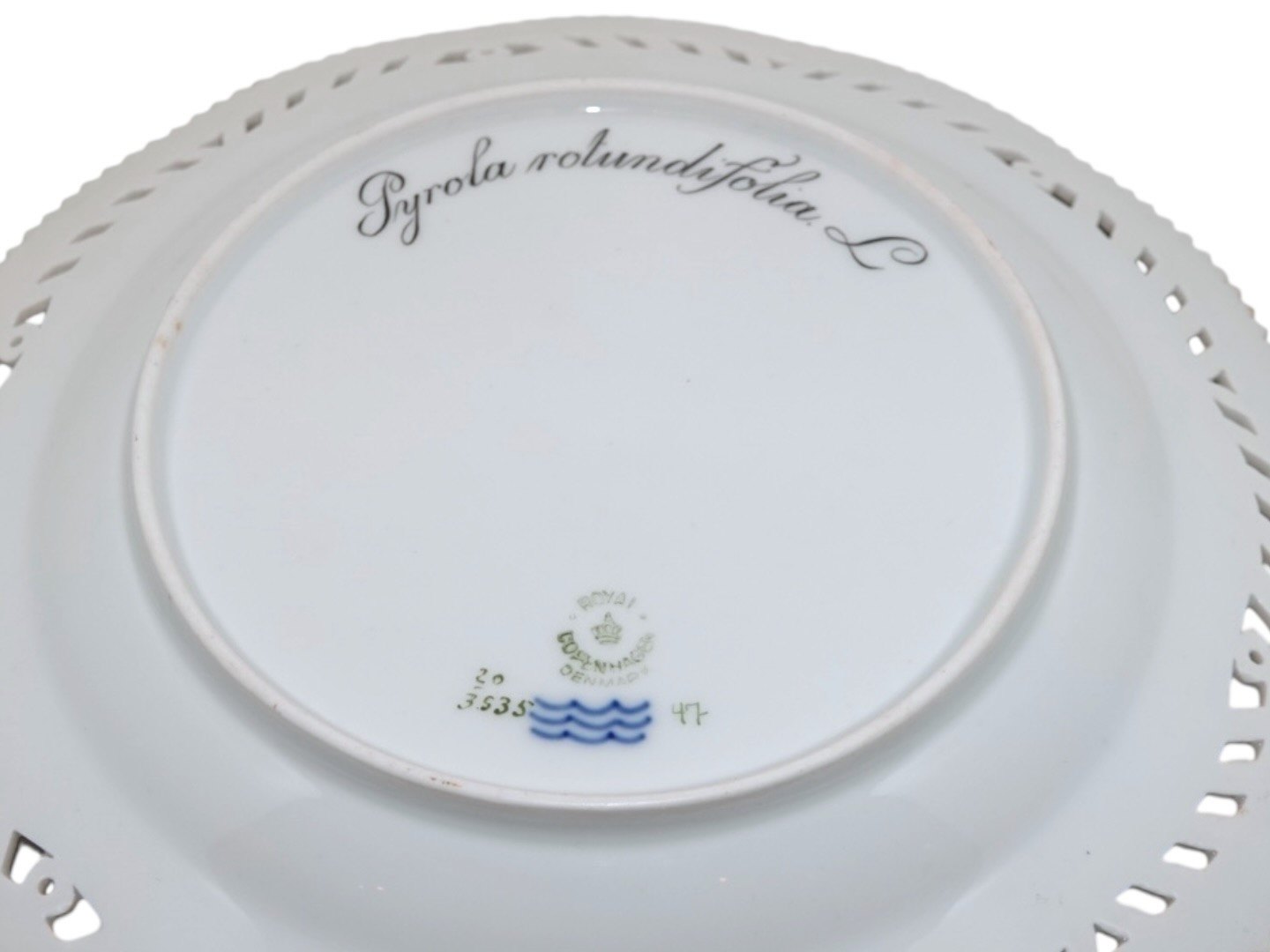 Royal Copenhagen Flora Danica, middagstallerken / underfad til frugtskål med gennembrudt kant.Dekorationsnummer 20/3535.