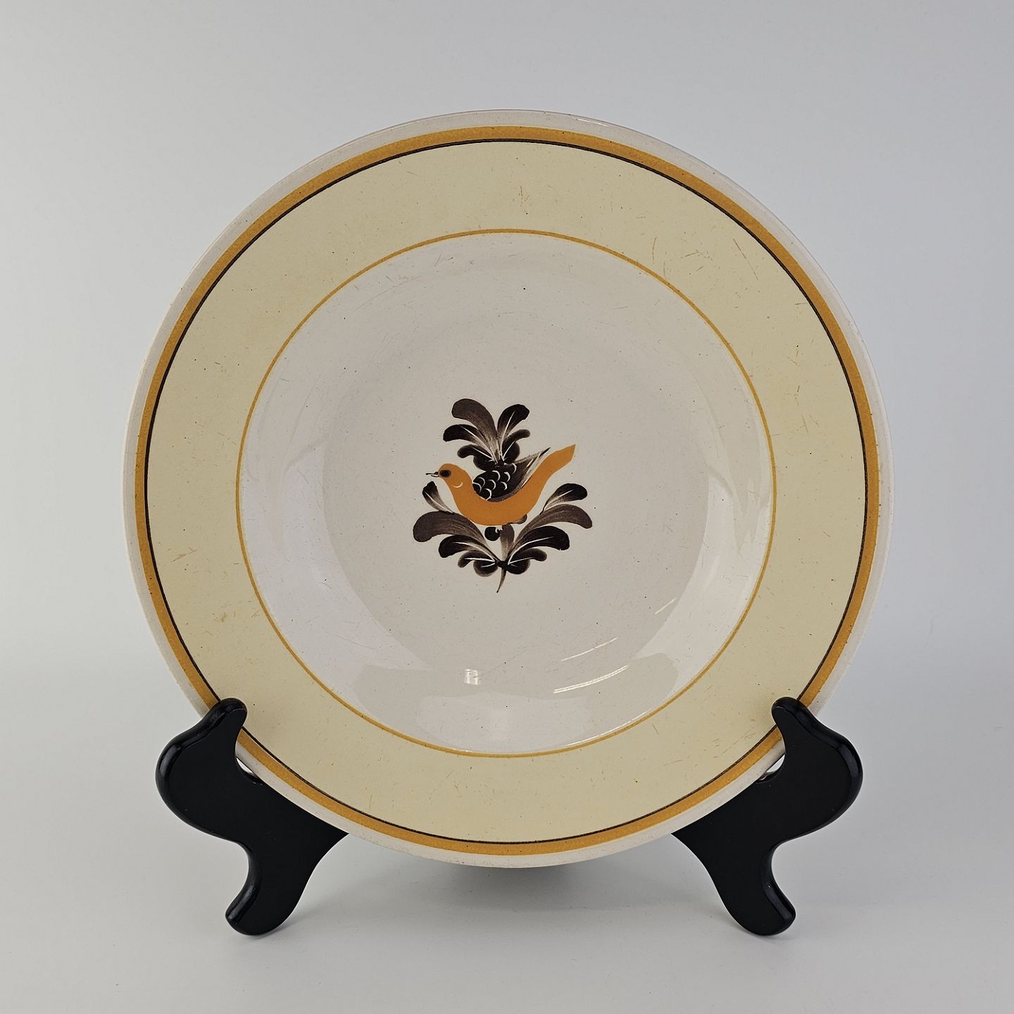Dyb tallerken i fajance fra stellet Margrethe fremstillet i perioden 1937-1940.Formgiver Nils Thorsson