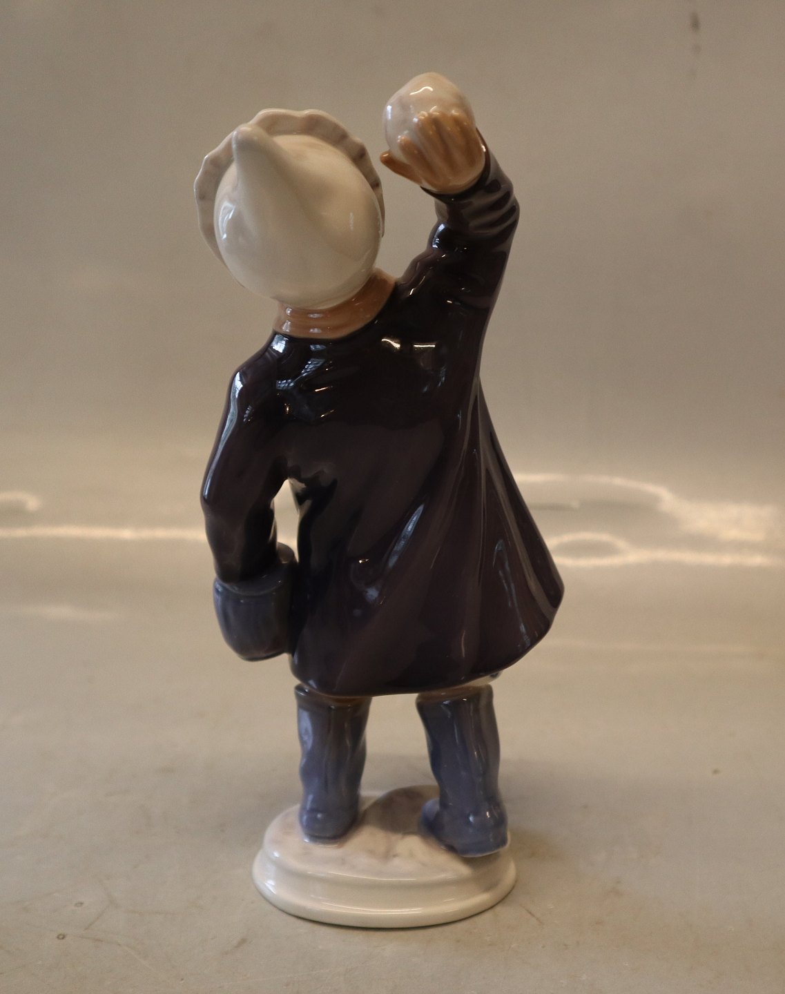 Dahl Jensen 1180 Pige med snebold (DJ) 19 cm. Mærket med kongelig krone og DJ Copenhagen i hel og fin stand. 2. sort Händler