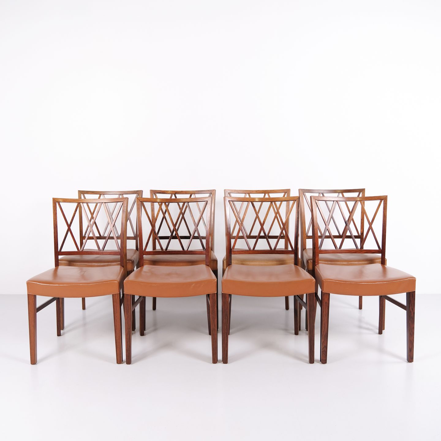 Satz von acht Esszimmerstühlen aus Palisander, entworfen von Ole Wanscher für Slagelse Møbelværk. Dänisches Design aus den 1950er Jahren mit klassischer und eleganter Formensprache.— Herkunft: Dänemark