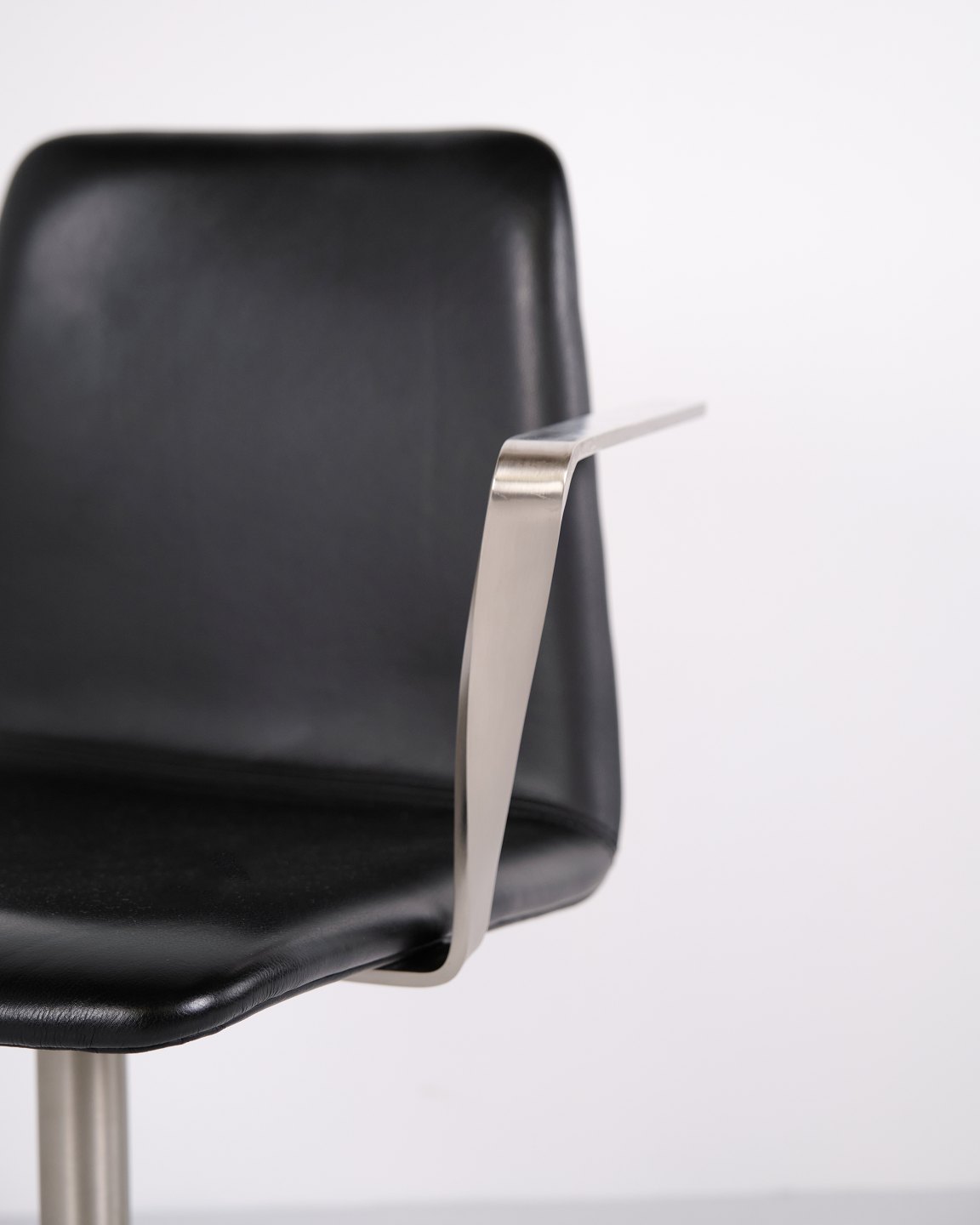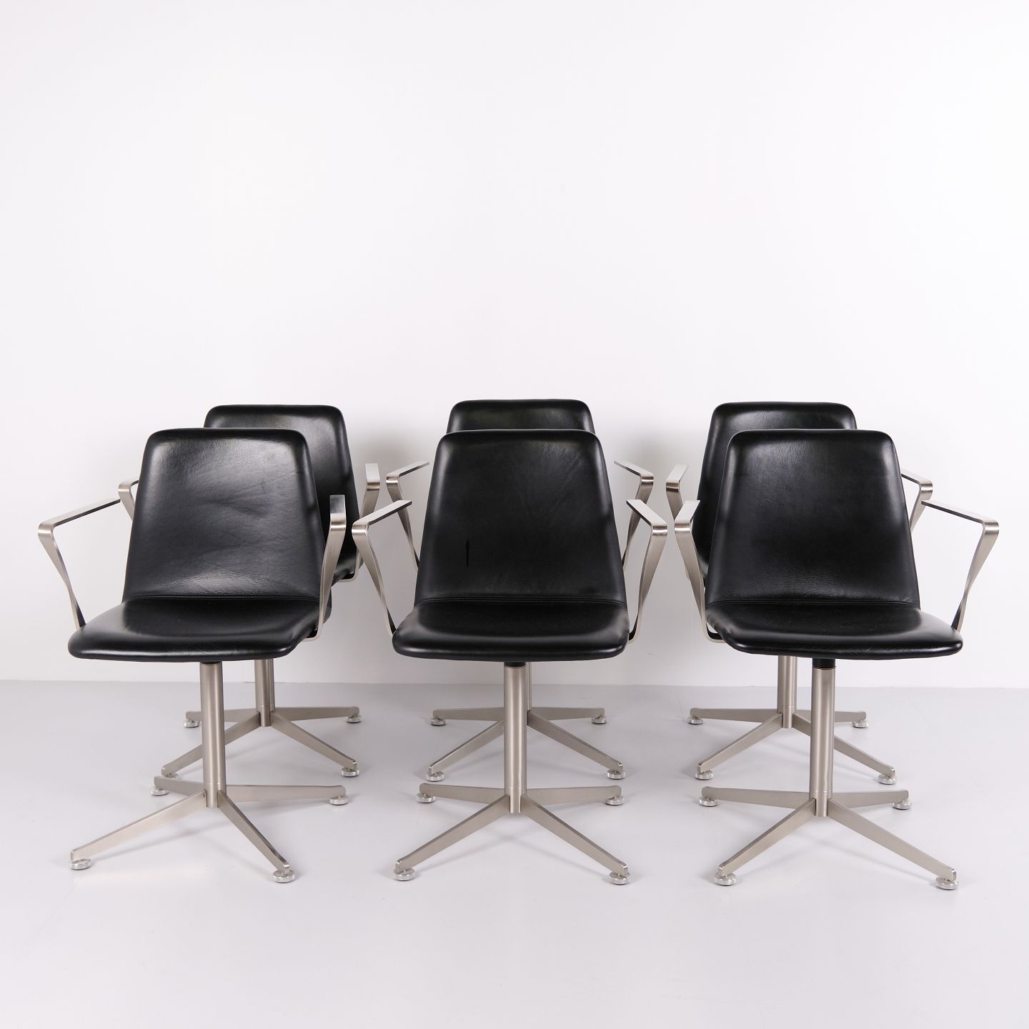 Satz von 6 Paustian Spinal 44 Konferenzstühlen aus schwarzem Leder. Dänisches Design mit modernem und funktionalem Formensprache.— Herkunft: Dänemark