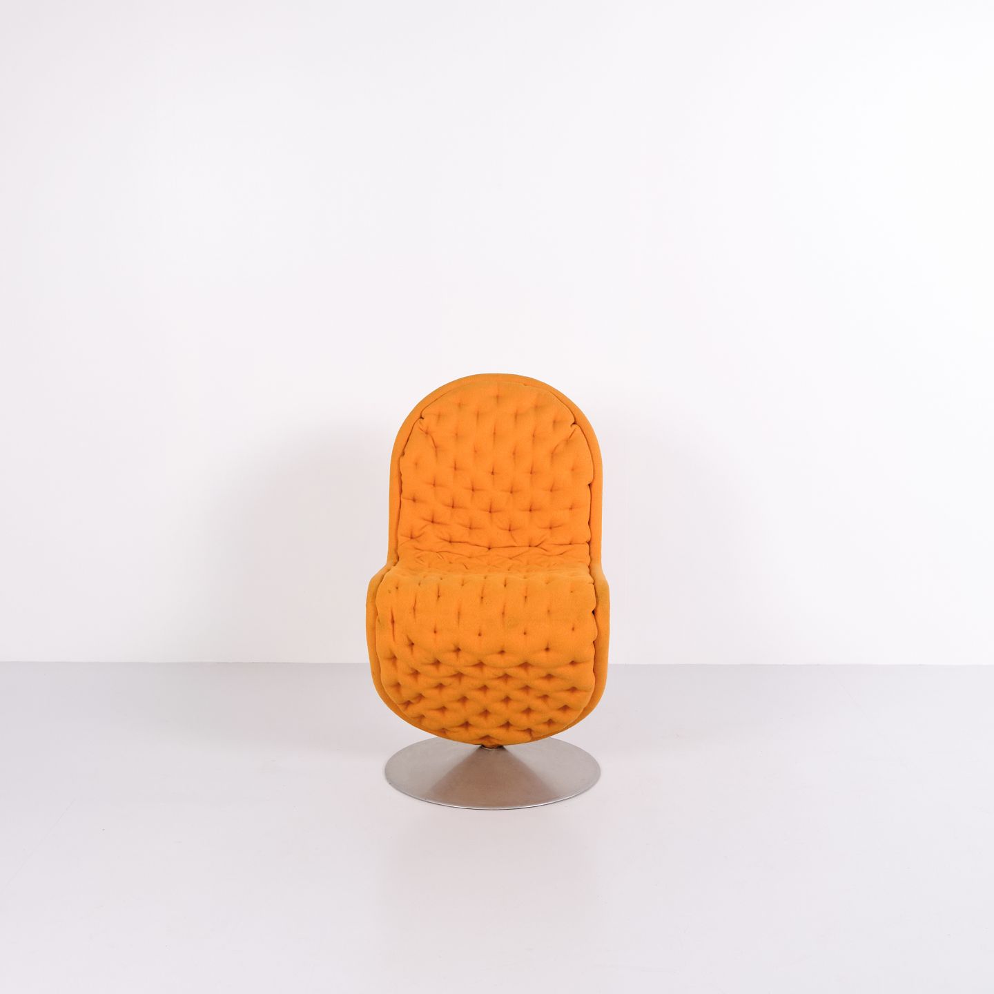 Stuhl aus dem 1-2-3 System, entworfen von Verner Panton und hergestellt von Fritz Hansen in den 1970er Jahren. Der Stuhl hat eine einfache und klare Formensprache mit Fokus auf Komfort und Funktion, typisch für Pantons Arbeit, bei der moderne Materialien und innovative Konstruktionen eine zentrale Rolle spielen.— Herkunft: Dänemark