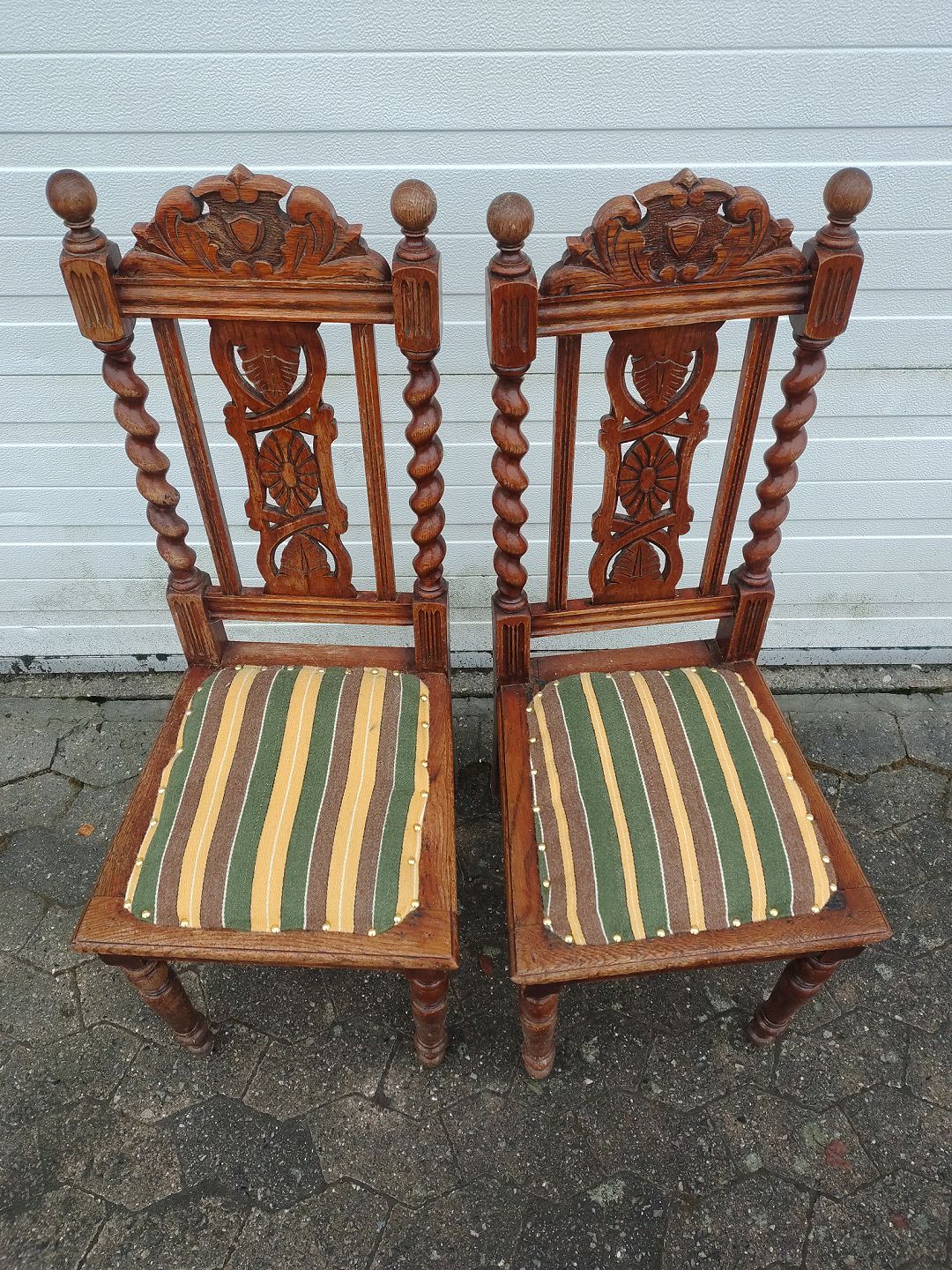 2 Stole i bejdset massivt egetræ, fra 1920erne.De har brugsspor.