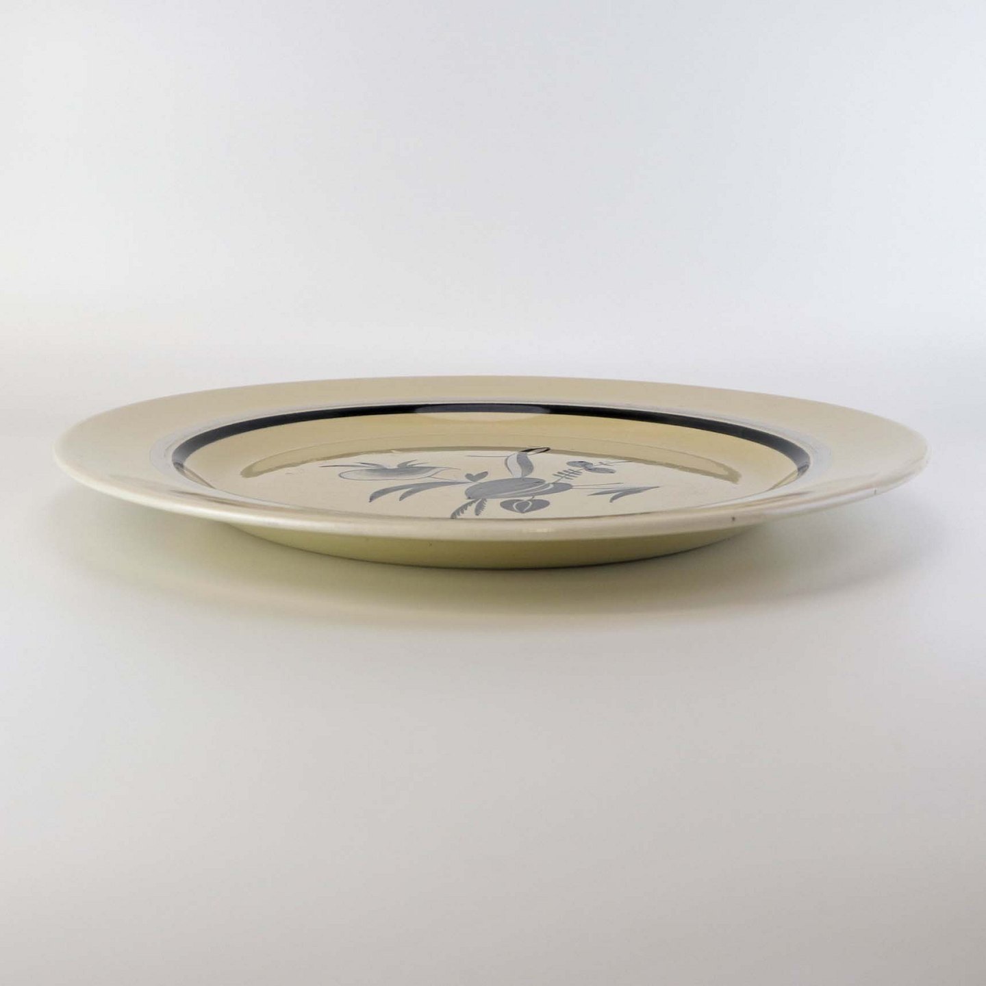 Rundt serveringsfad i fajance fra stellet Dragsholm fremstillet i perioden 1934-1965. Nr 256Formgiver Thorkild Olsen