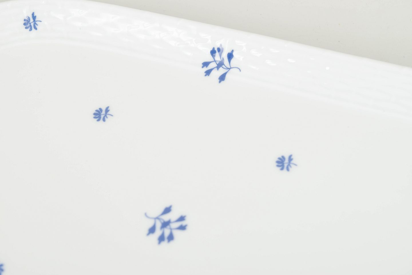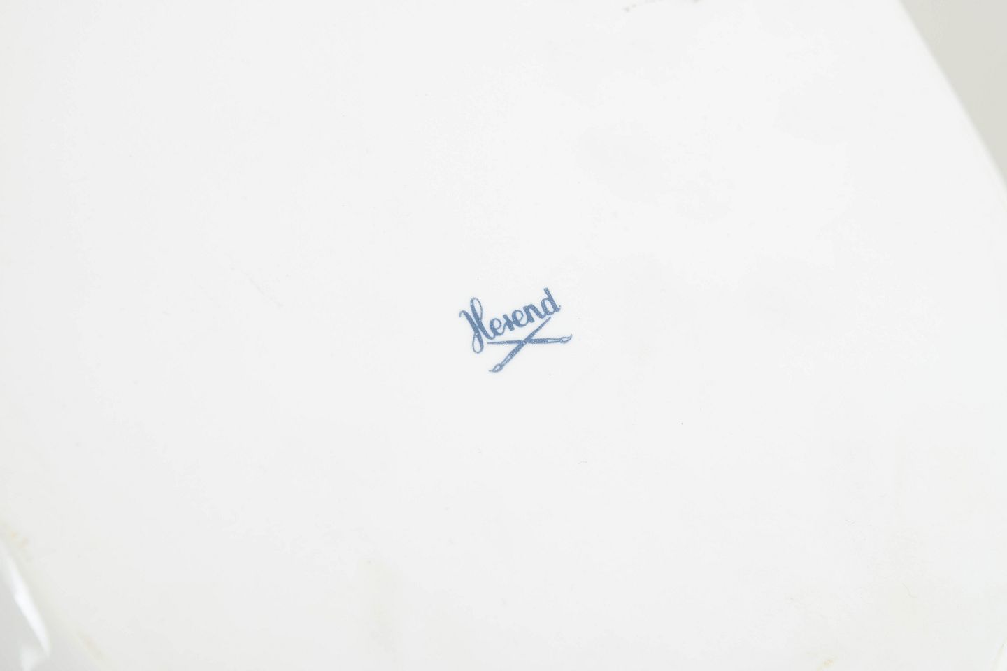 Herend, stort fad.Imponerende og elegant ovalt porcelænsfad fra Herend, udført med raffineret håndmalet dekoration og fin forgyldning langs randen. Fadet fremstår med klassisk proportionering og balanceret form, typisk for fabrikkens produktion i mellemkrigstiden. Et repræsentativt og dekorativt serveringsfad fra 1930’erne.