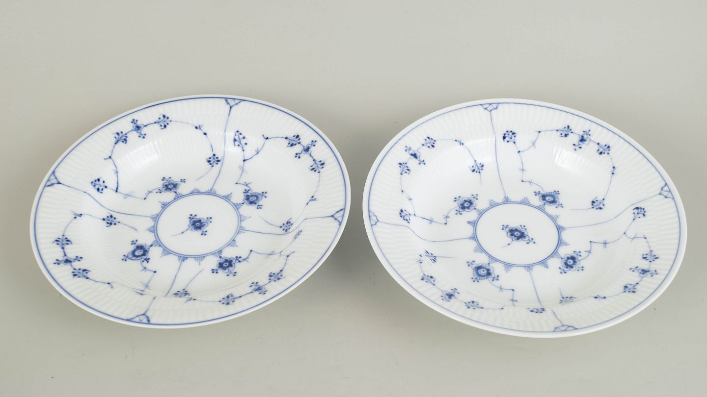 Royal Copenhagen Musselmalet Riflet to dybe suppetallerkener.Beschreibung: