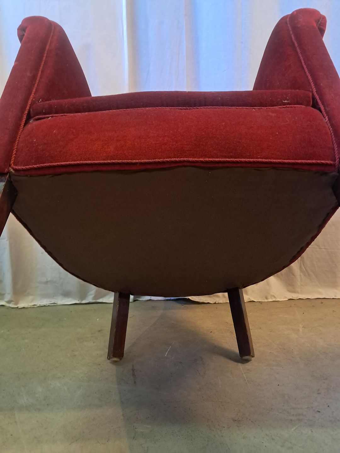 Lænestol med velourbetræk, fra 1920erne.Den har brugsspor.