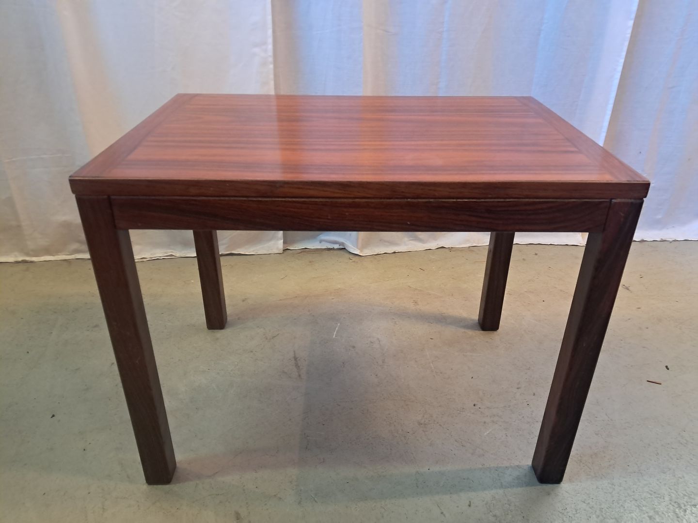 Lampebord i fineret palisander, fra 1970erne.Det har brugsspor.