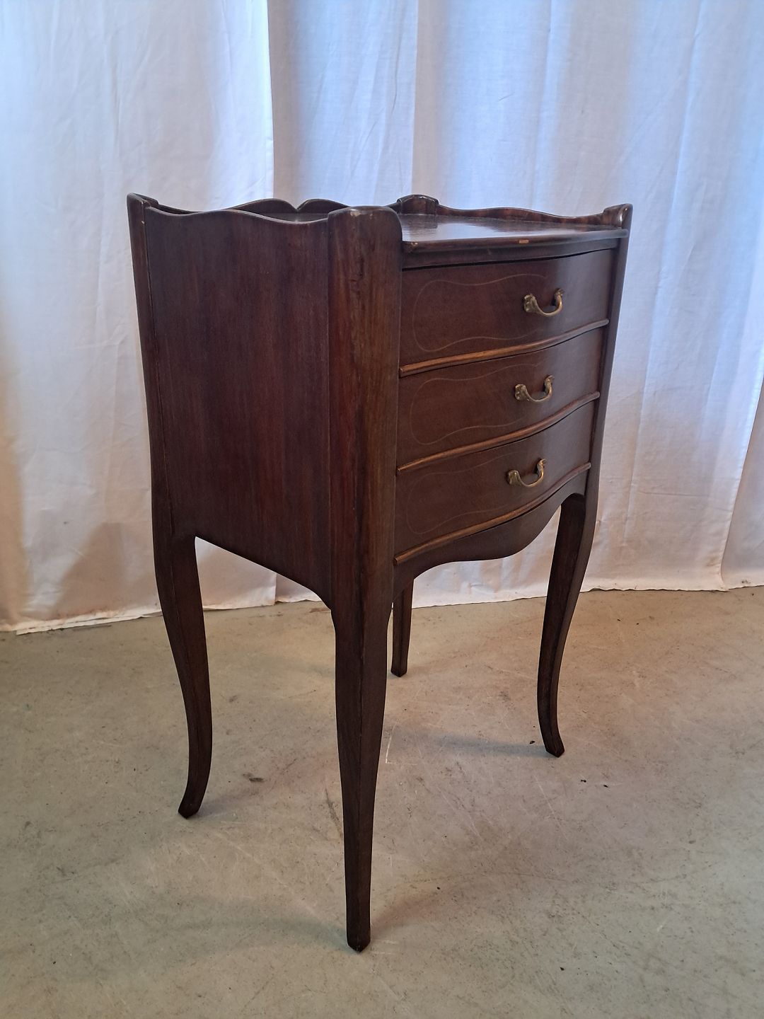 Kommode i fineret mahogni, fra 1950erne.Den har brugsspor.