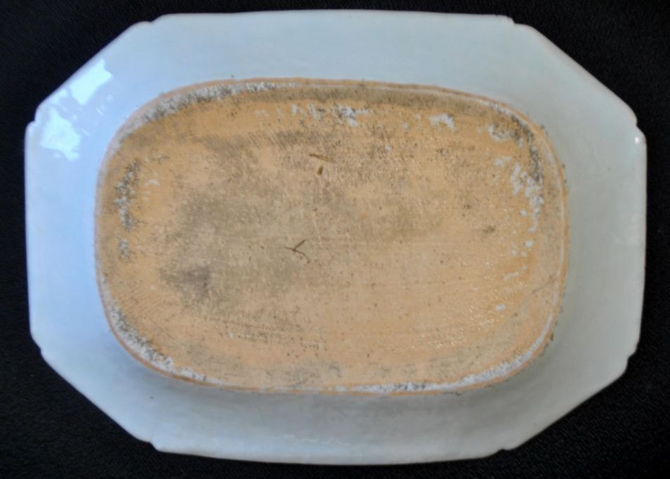 Chinesische, blau dekorierte, achteckige Schale, ca. 1780. Kangxi-Dynastie. Verziert mit Landschafts-, Vogel- und Blumenmotiven. Unmarkiert. L.: 31,5 cm. B.: 23 cm.Einwandfreier Zustand!