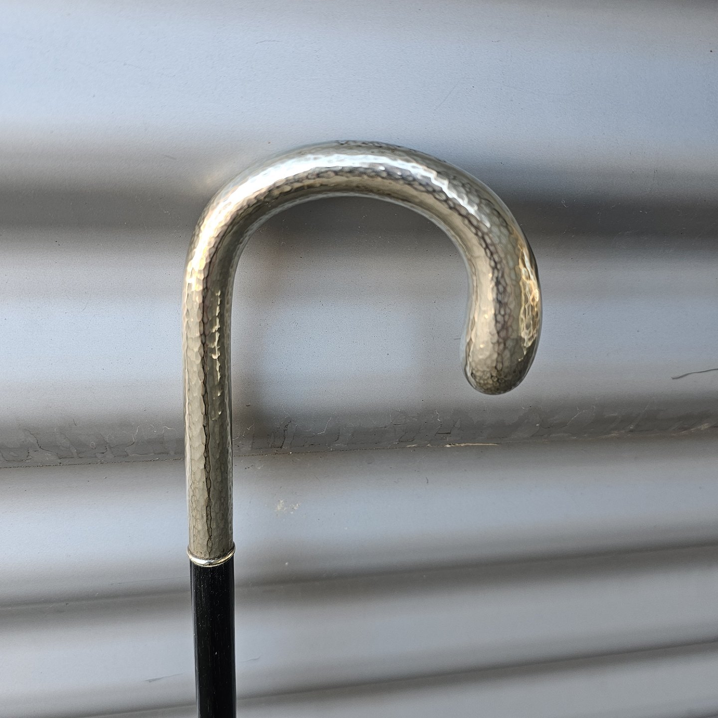 Stok i lakeret træ med buet håndtagStemplet Alpacca
