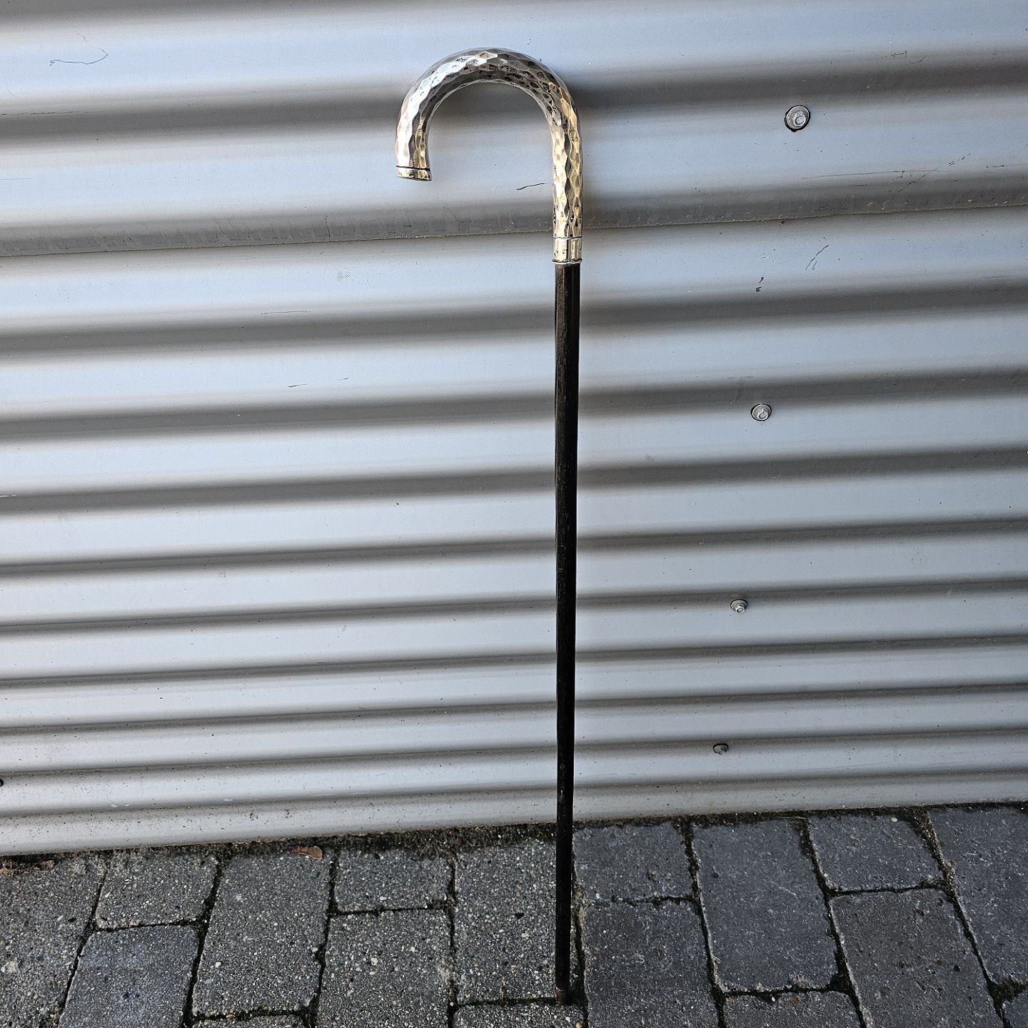Stok i træ med buet håndtag i sølv, 830SIndgraveret EW 1/4-1920