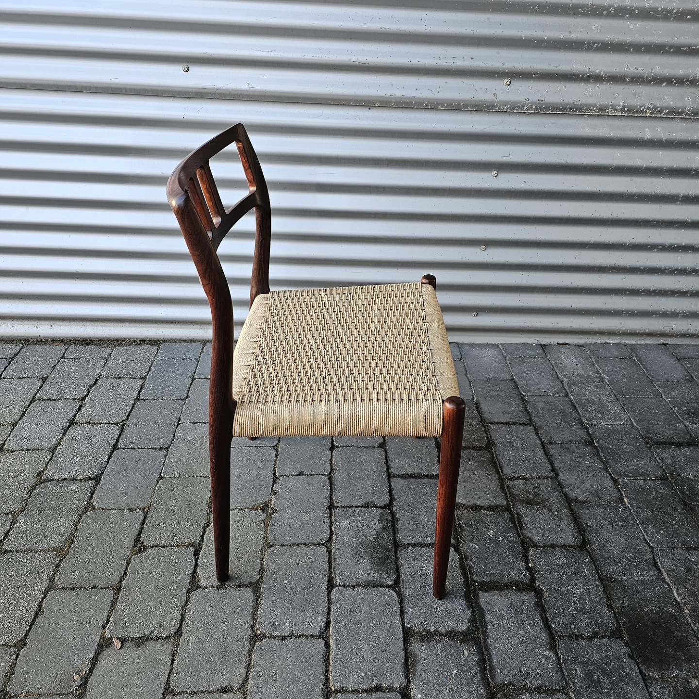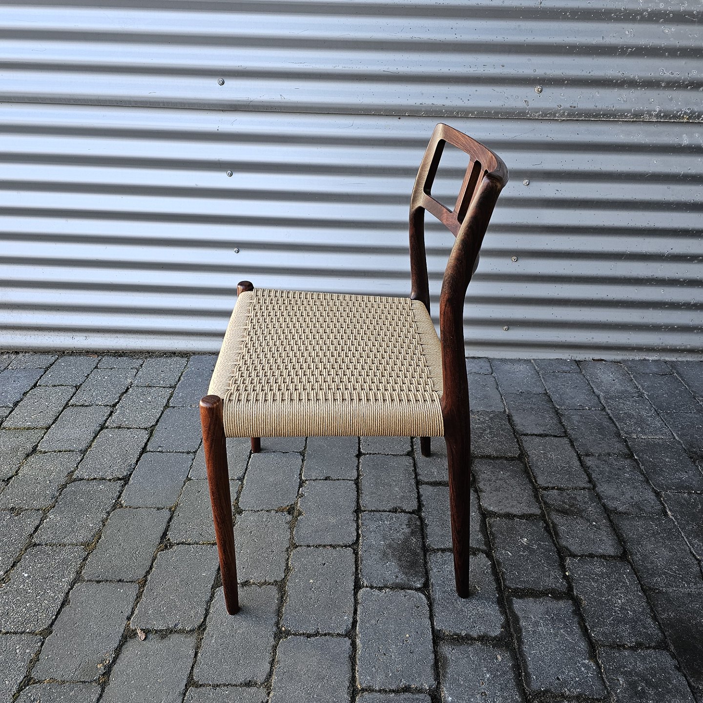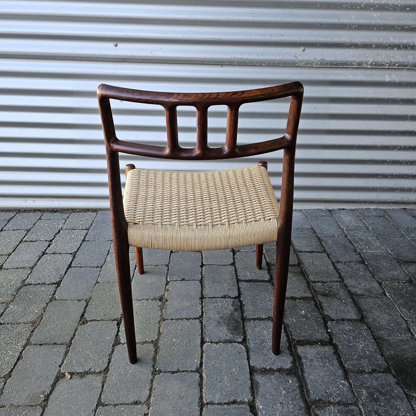 Sæt med fire styk spisebordsstole model 79 i palisander med ny flettede sæderDesign Niels Ole Møller