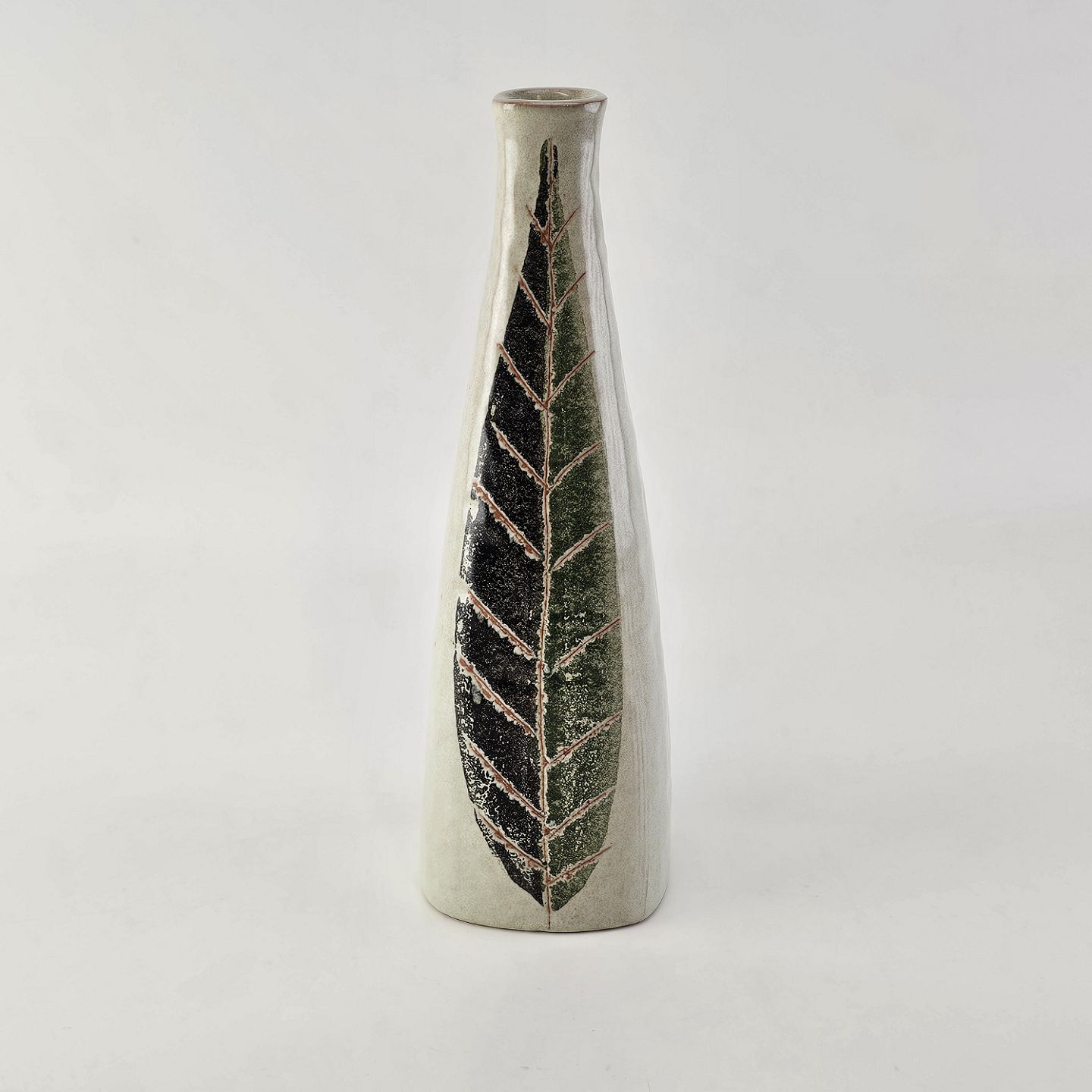 Firkantet vase i keramik med bladmotiv Producent Rörstrand