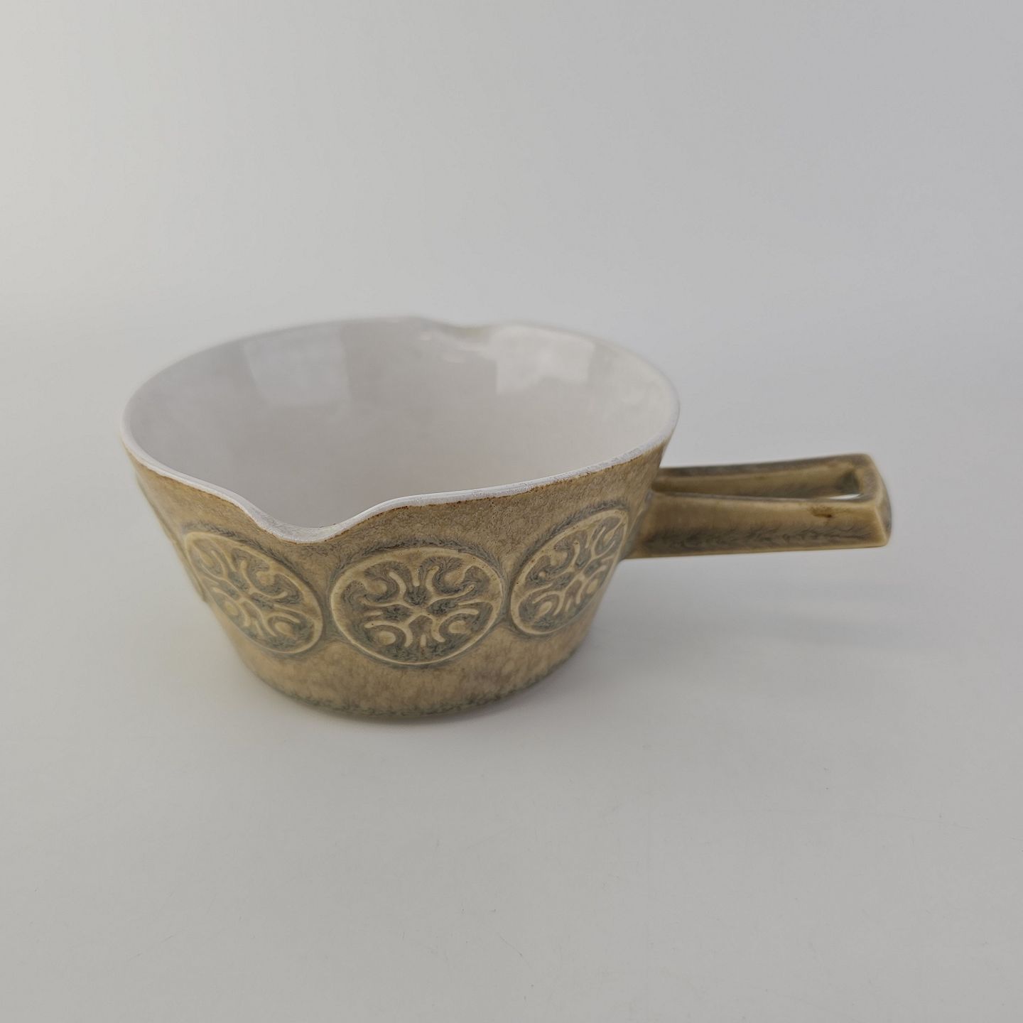 Skål med håndtag i stentøj fra stellet BautaFormgiver Henning Jensen i 1957-1958