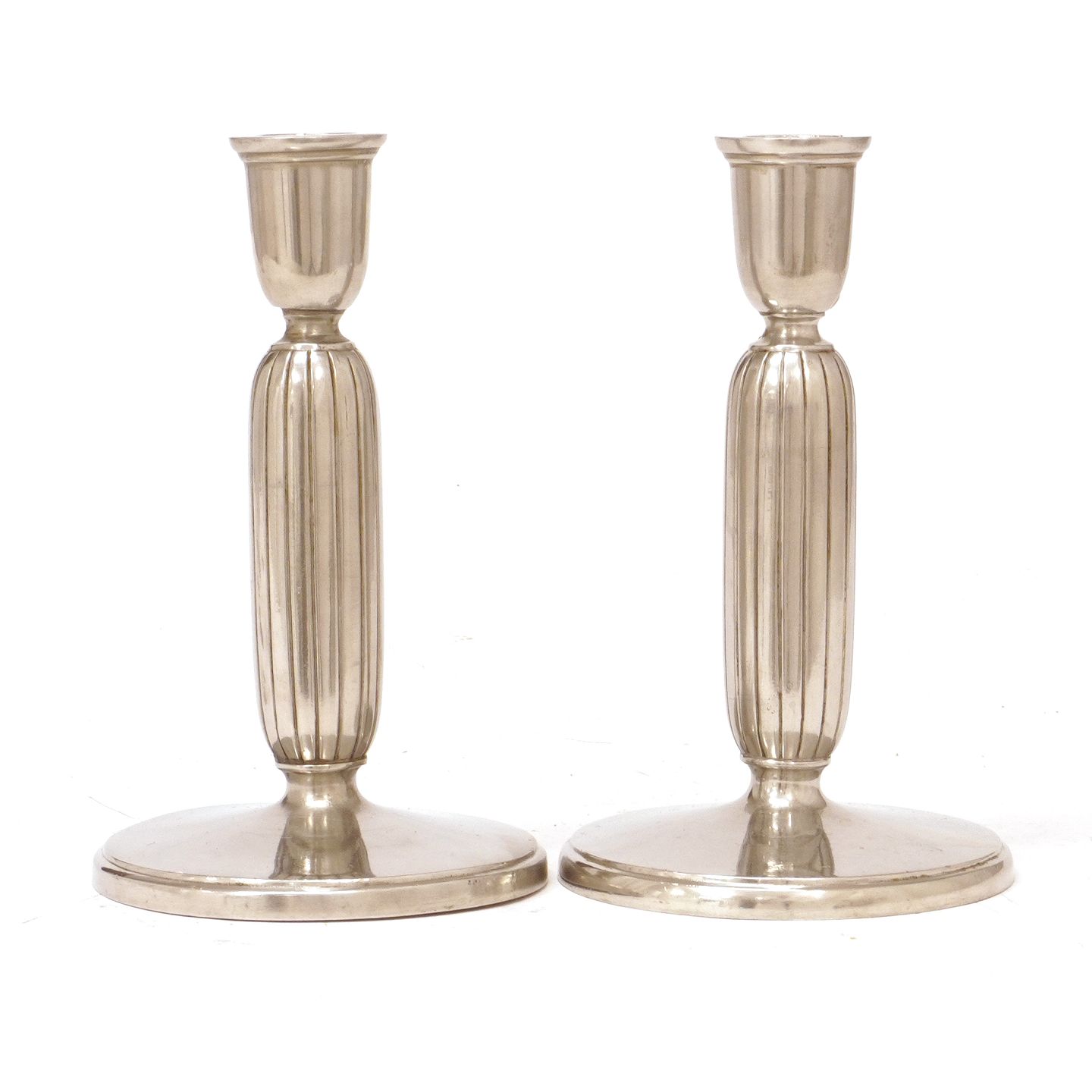Ein Paar Just Andersen, Dänemark, Art Deco ZinnleuchterH: 16cm