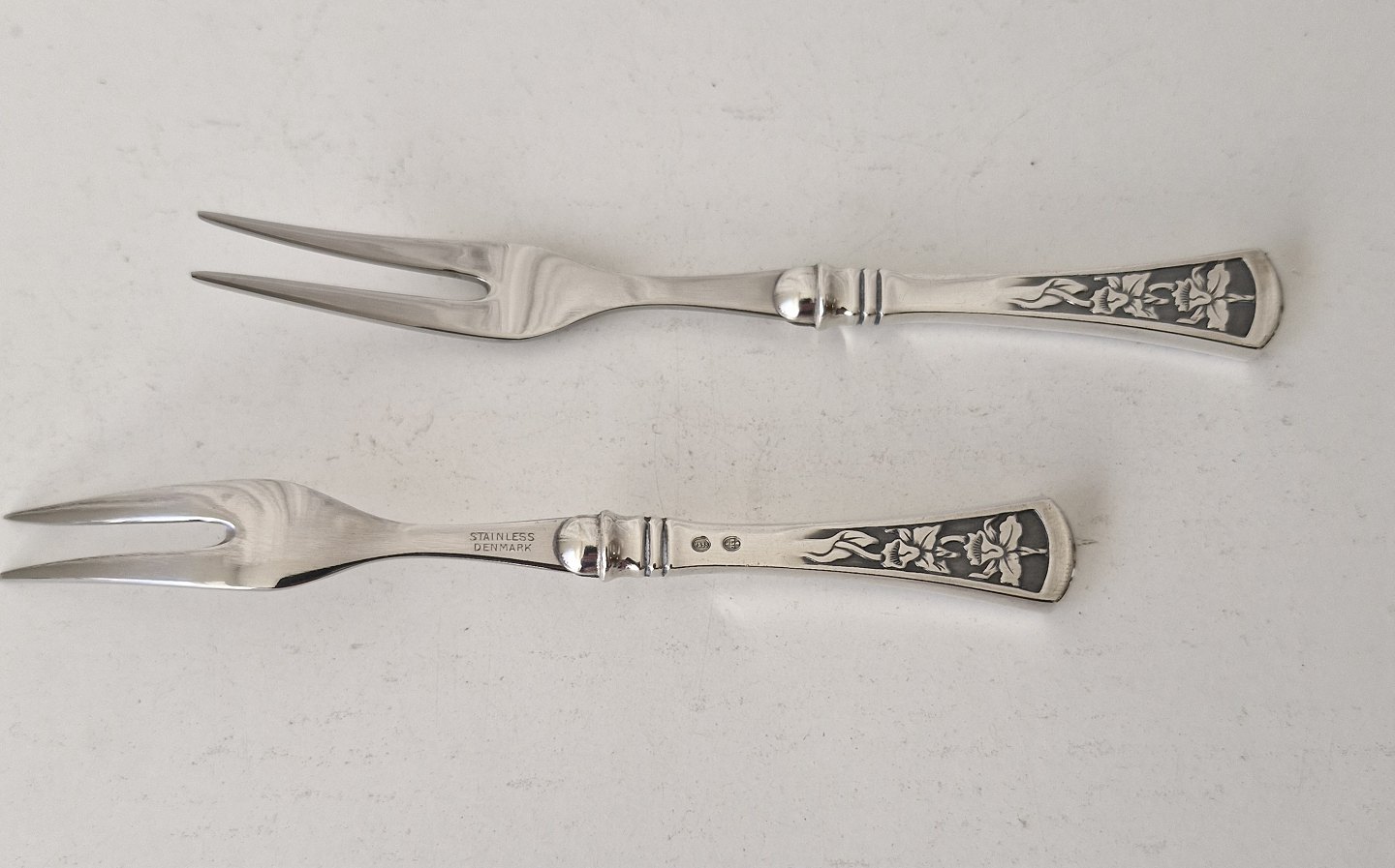 Orkide pålægsgaffel i sølv og stålStemplet de tre tårne