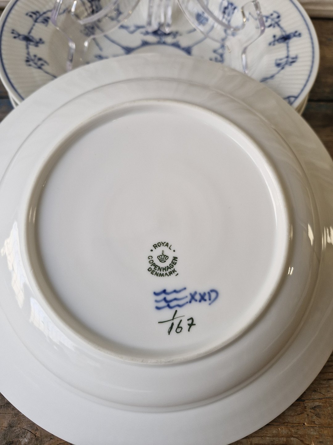 Royal Copenhagen Musselmalet riflet dybtallerken No. 167, 1. sortering