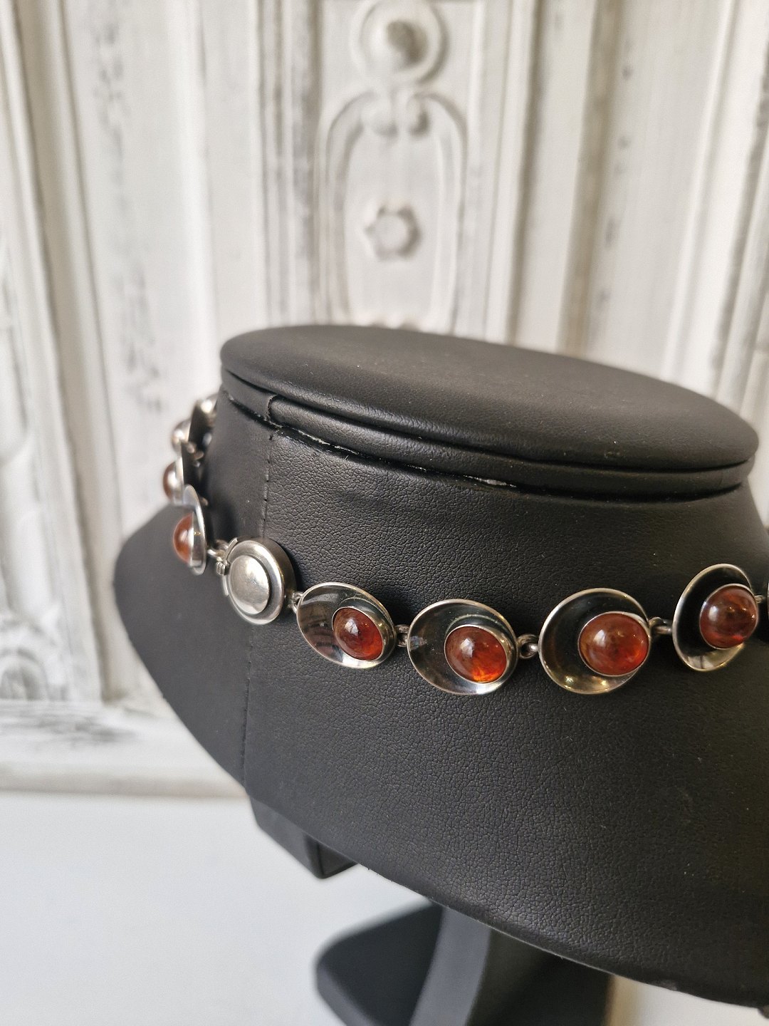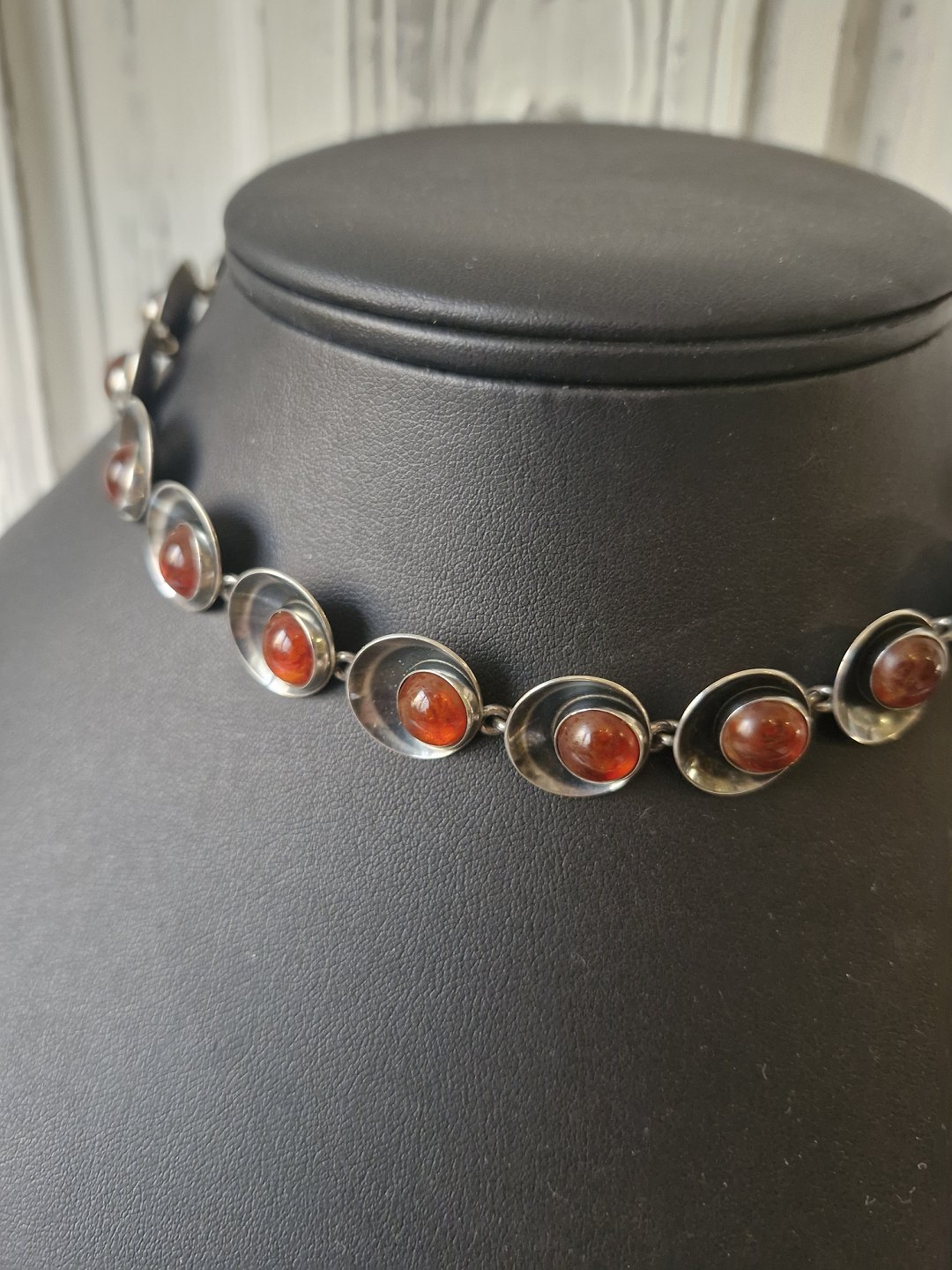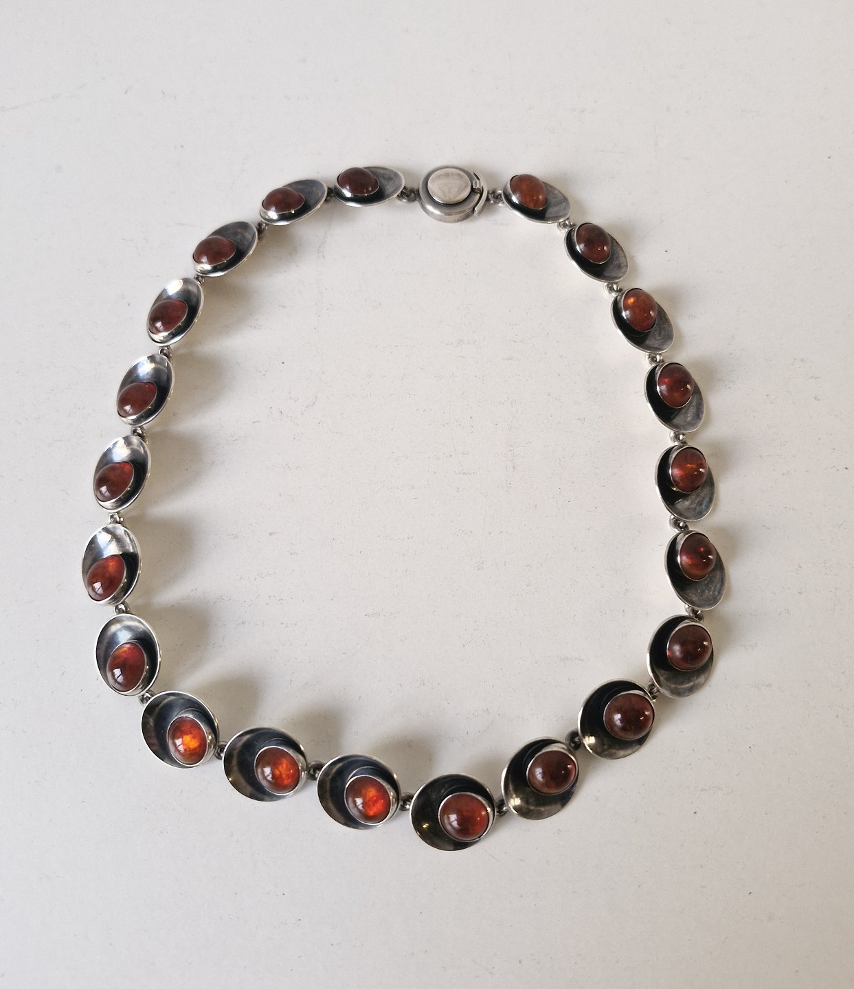 N.E.From vintage halskæde i sterlingsølv og ravStemplet: N.E.From - Sterling - Denmark
