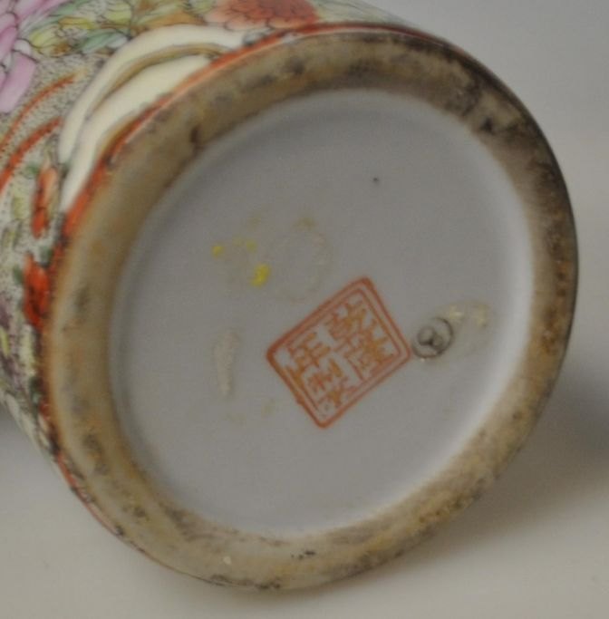 Chinesischer Porzellan-Pinselbecher, 20. Jahrhundert. Dekoriert in Transfertechnik mit Vögeln und Blumen. Gestempelt. Höhe: 12,5 cm.Bestellnummer: 29072