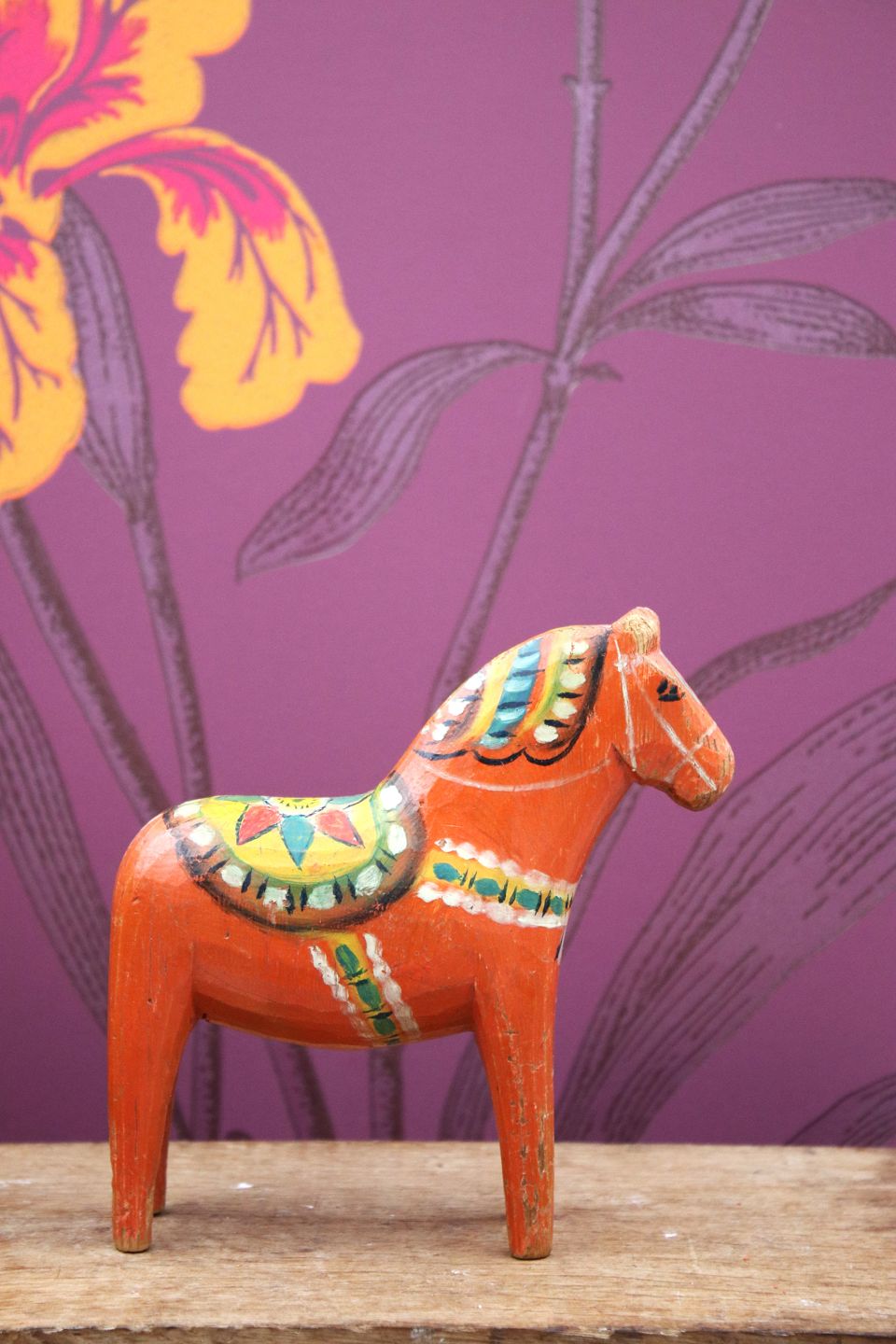 Gammel svensk Dalahest med original bemaling med fin patina...