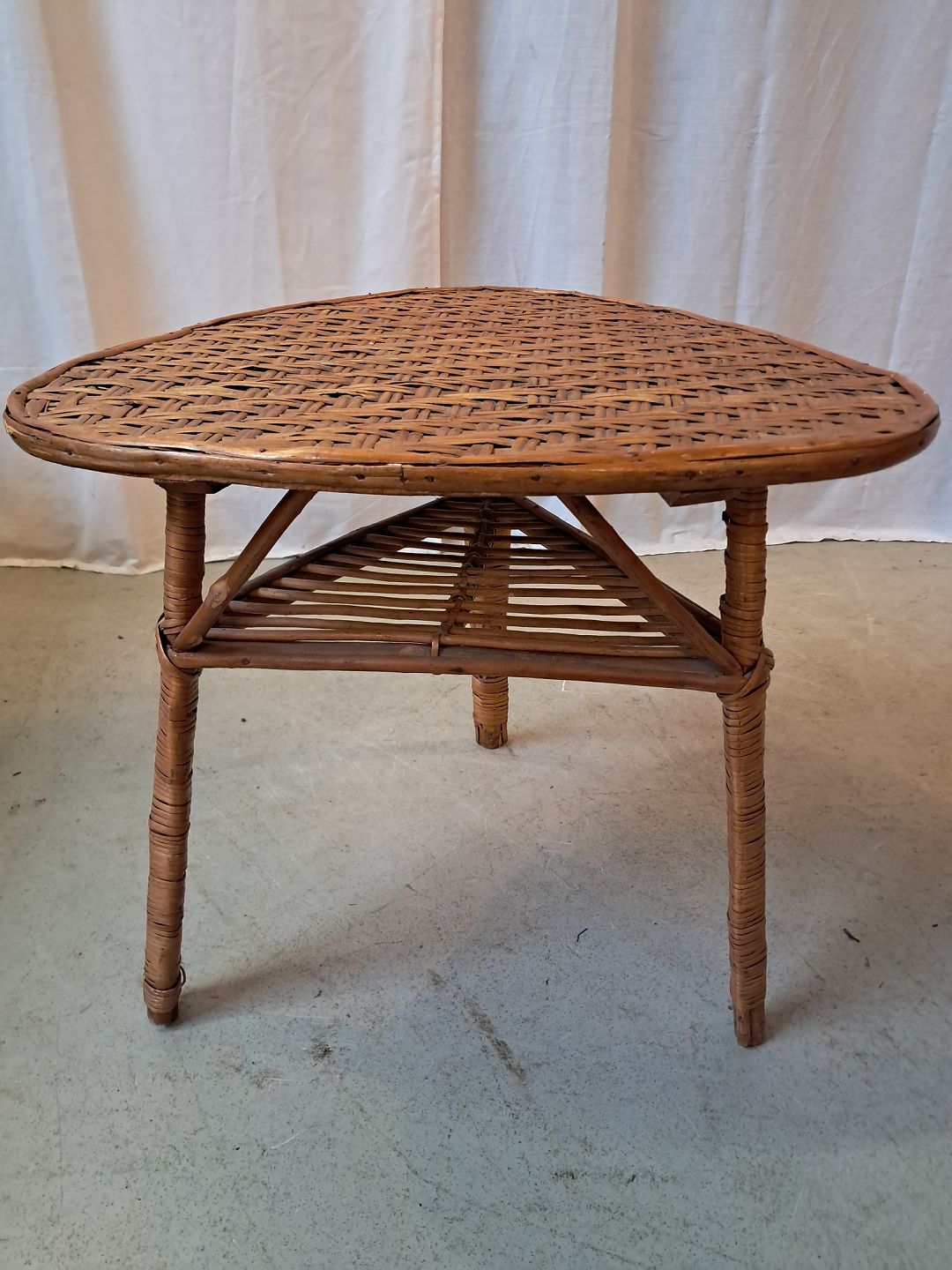 Bord i bambus og fyrretræ, fra 1970erne.Det har bruigsspor.