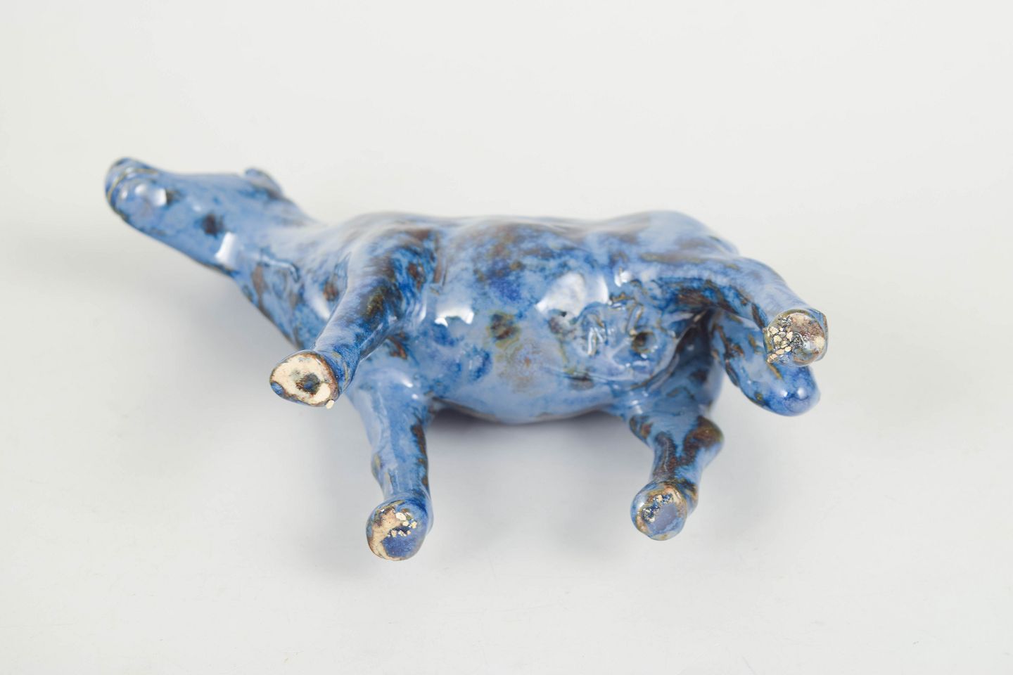 Nils-Erik Zetterström, føl figur.Unik keramisk figur forestillende et føl udført i stentøj med blank glasur i blå toner med brunlige nuancer. Figuren er modelleret med en naturlig kropsholdning og detaljeret manke og hoved, hvilket giver et levende og karakterfuldt udtryk. Usigneret unika fra 1970’erne.