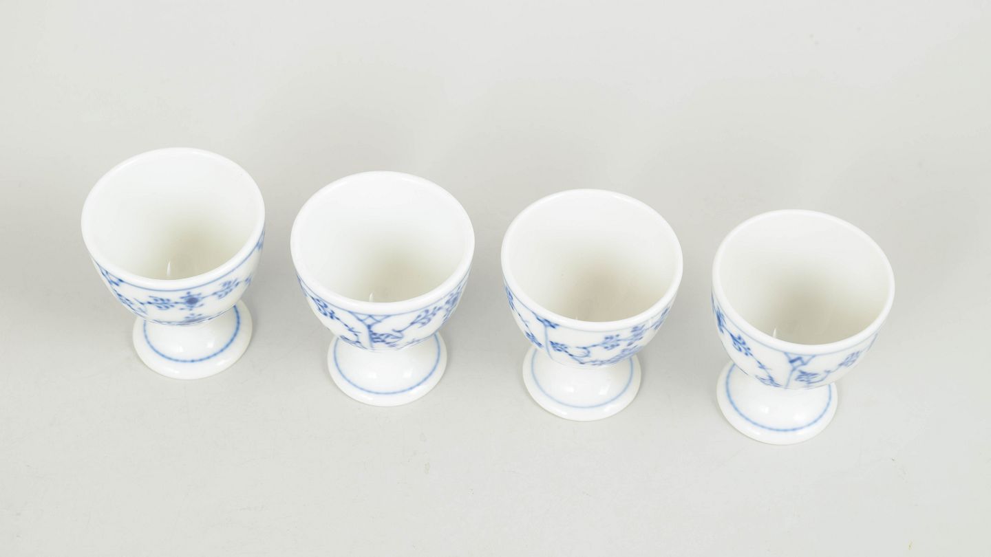 Royal Copenhagen Musselmalet Riflet, sæt af fire æggebægre.Beschreibung: