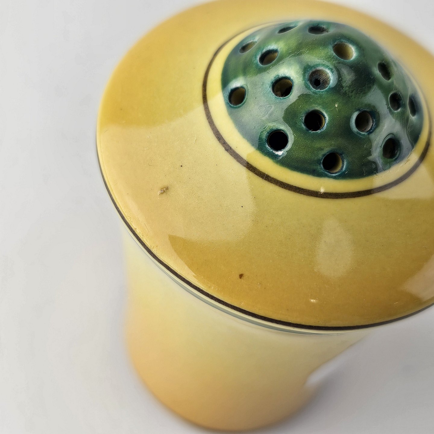 Saltbøsse i fajance fra stellet Gertrud fremstillet i perioden 1933-1939.Formgiver Nils Thorsson
