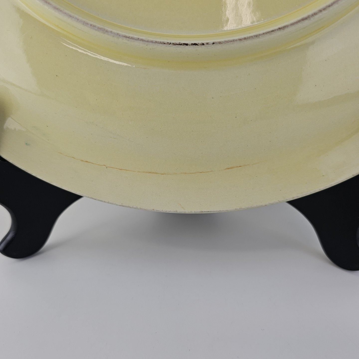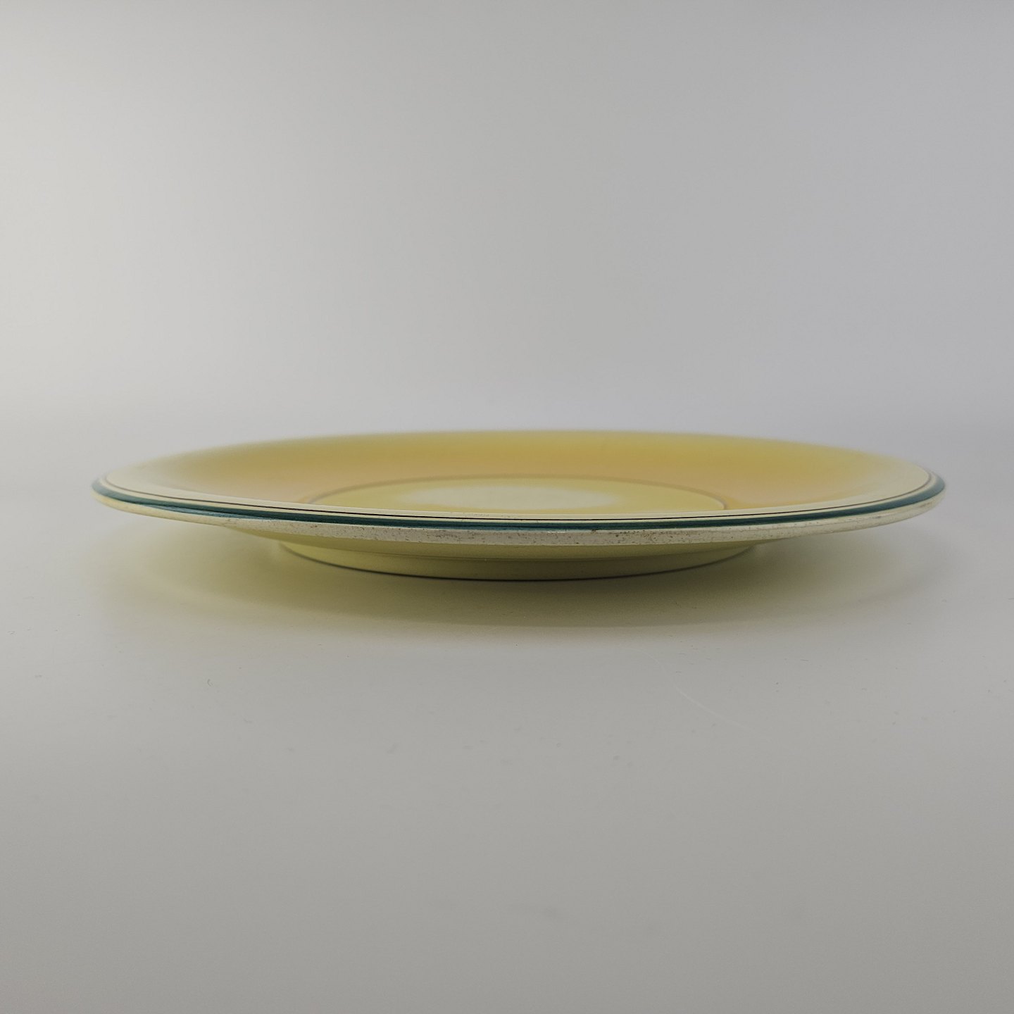 Rundt fladt fad i fajance fra stellet Gertrud fremstillet i perioden 1933-1939.Formgiver Nils Thorsson