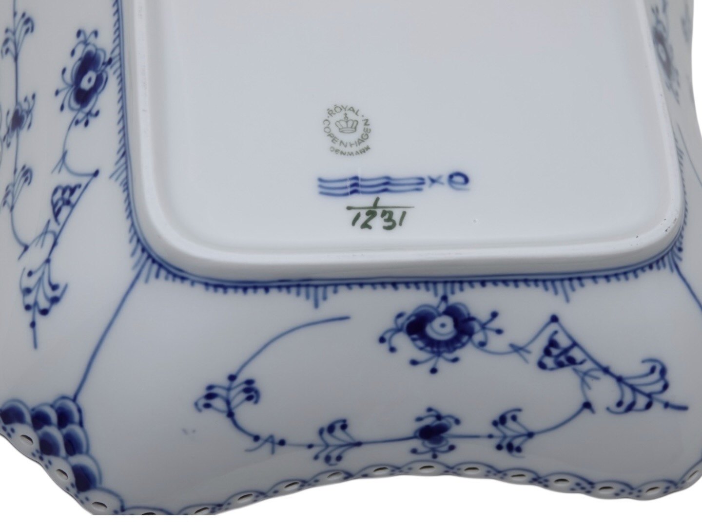 Royal Copenhagen Musselmalet Helblonde, firkantet kartoffelskål.Dekorationsnummer 1/1224.